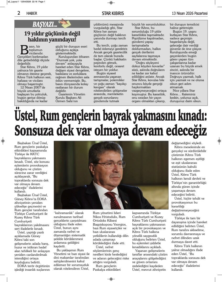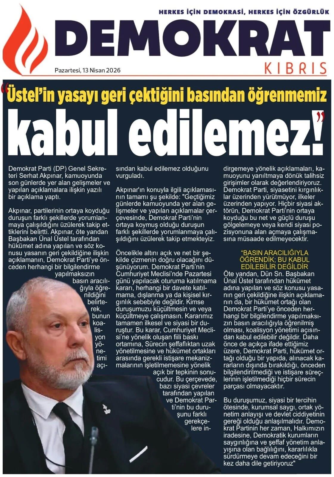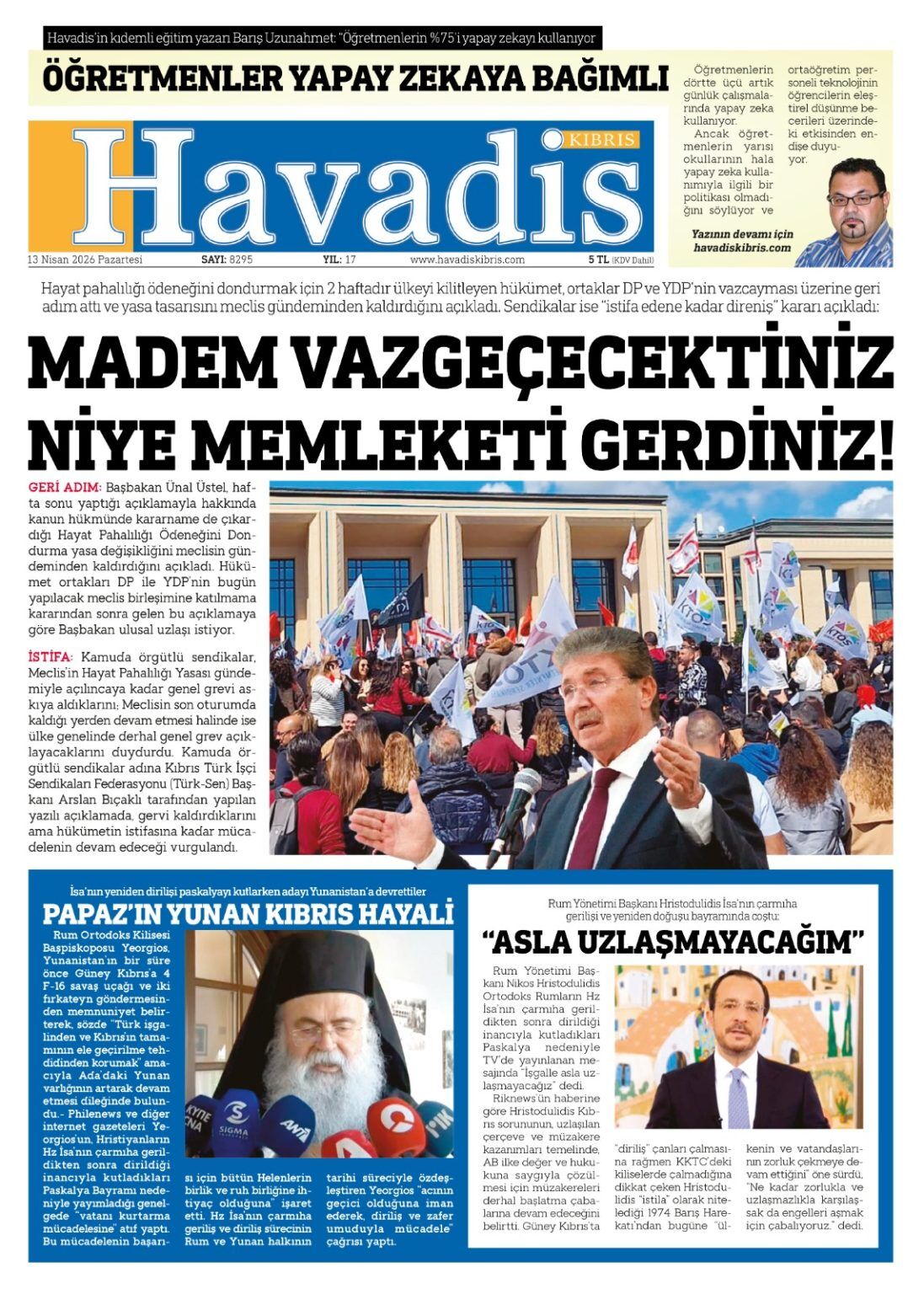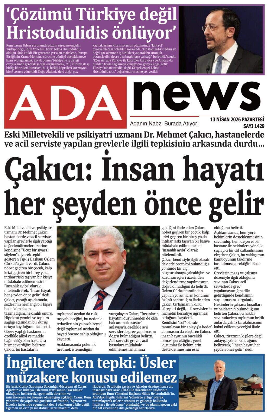 KıbrısKKTC GazeteleriTürkiyeGAZETE MANŞETLERİ (13 NİSAN 2026)Nisan 13, 2026 8:05 am PaylaşEtiketlendi:Kibris dakik KKTC gazeteleri manşetleri İlgili haberler IRAK MECLİSİ’NDE CUMHURBAŞKANI SEÇİMİ İKİNCİ TURA KALDI Nisan 11, 2026 MEDYA ETİK KURULU’NDAN YAYINLARA KINAMA Nisan 11, 2026 DAÜ GİRİŞ VE BURS SINAVI TARİHLERİ AÇIKLANDI Nisan 11, 2026 Cevap bırakın Yanıtı iptal etE-posta adresiniz yayınlanmayacak. Gerekli alanlar * ile işaretlenmişlerdirYorumAd * E-posta * İnternet sitesi Daha sonraki yorumlarımda kullanılması için adım, e-posta adresim ve site adresim bu tarayıcıya kaydedilsin.