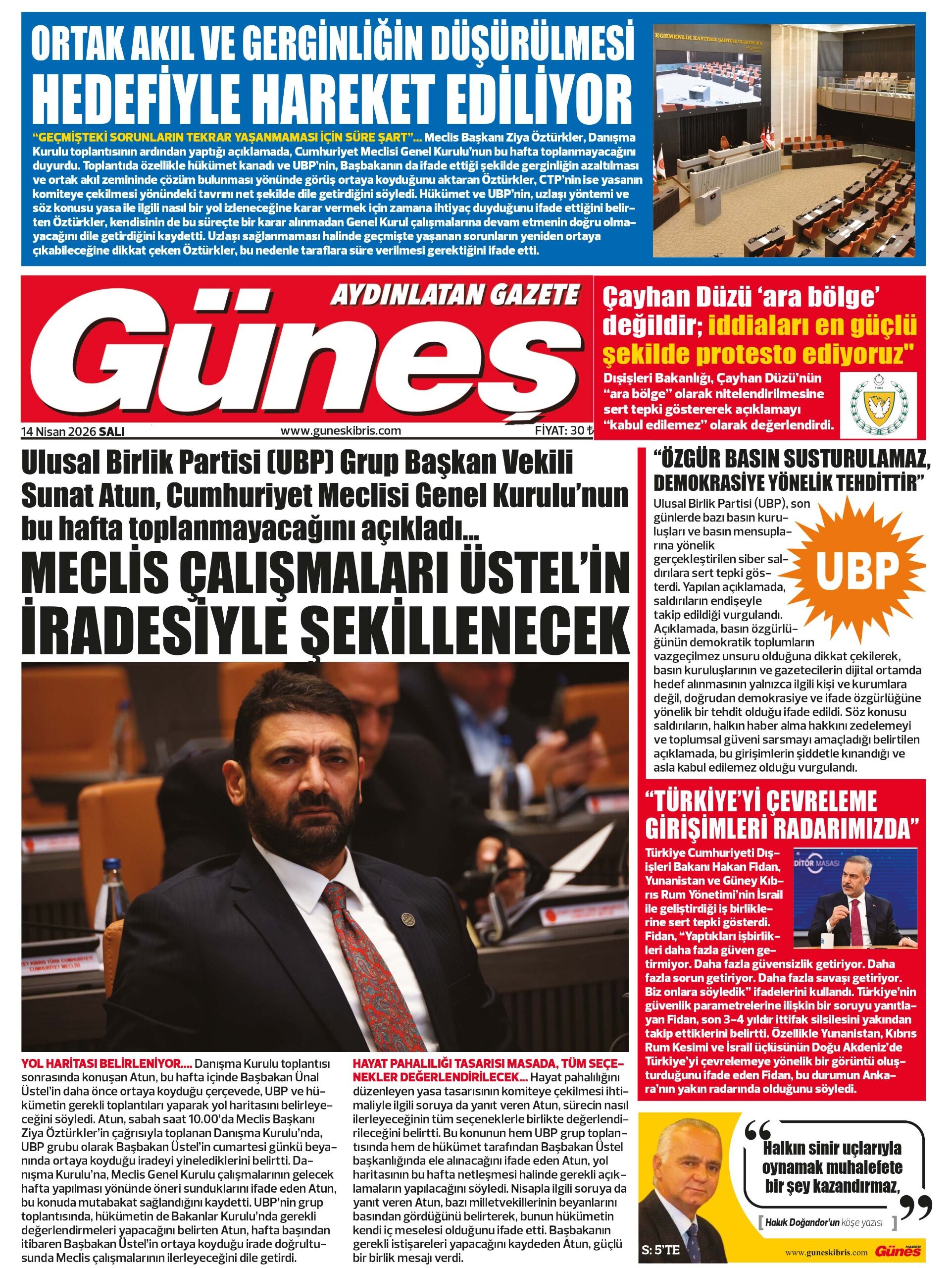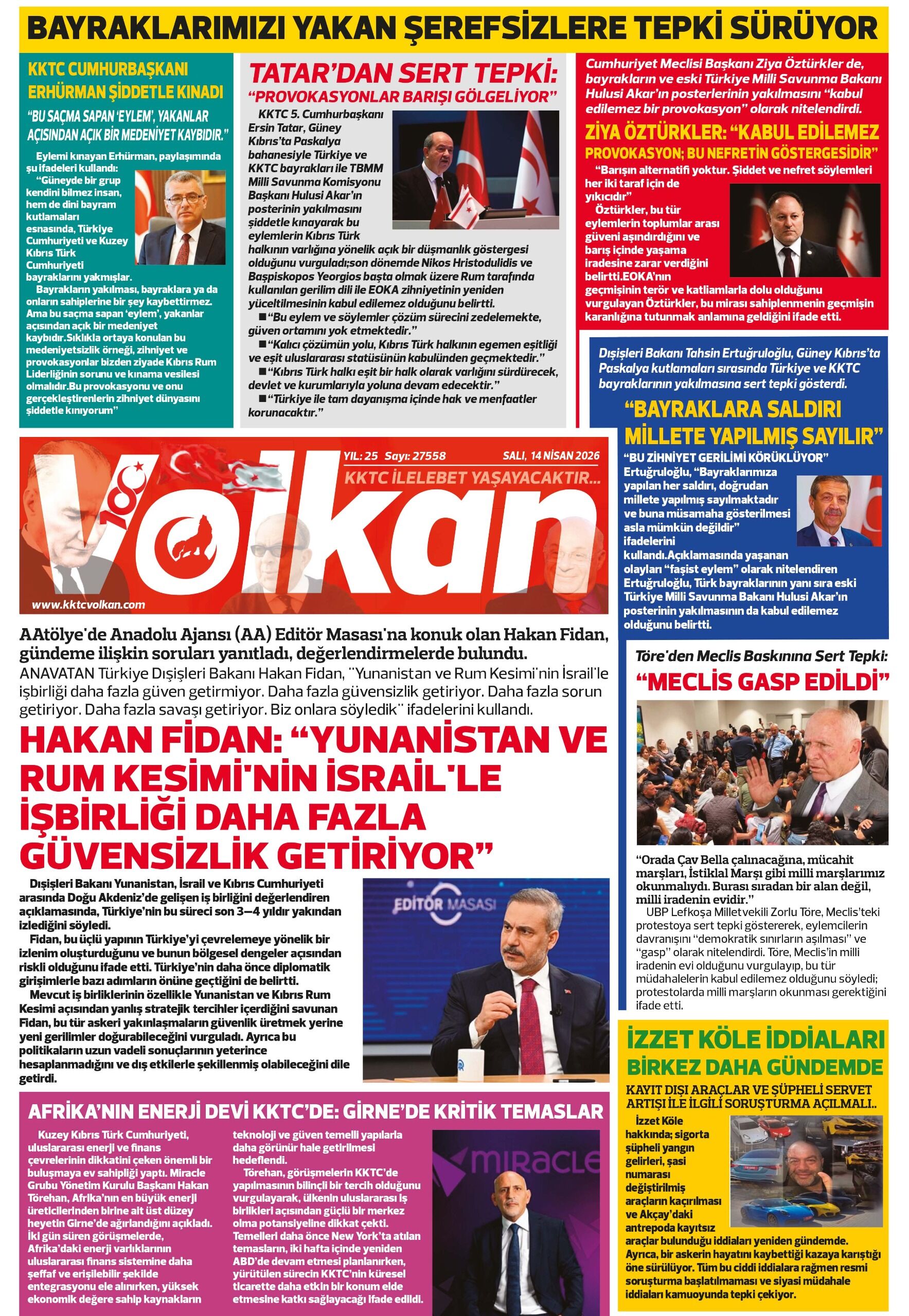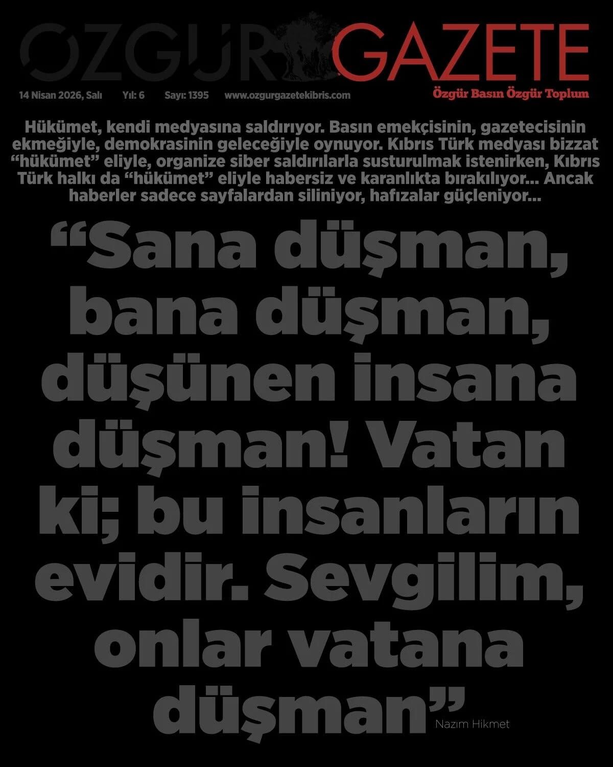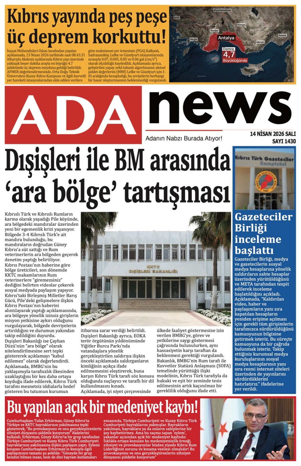KıbrısGAZETE MANŞETLERİ (14 NİSAN 2026)Nisan 14, 2026 8:10 am PaylaşEtiketlendi:Kibris dakik KKTC gazeteleri manşetleri İlgili haberler GÜLBAHAR: ERHÜRMAN NET TAVIR KOYMALI Nisan 14, 2026 DÖVİZ KURLARI (14 NİSAN 2026) Nisan 14, 2026 HULUSİ AKAR'DAN SERT TEPKİ Nisan 14, 2026 Cevap bırakın Yanıtı iptal etE-posta adresiniz yayınlanmayacak. Gerekli alanlar * ile işaretlenmişlerdirYorumAd * E-posta * İnternet sitesi Daha sonraki yorumlarımda kullanılması için adım, e-posta adresim ve site adresim bu tarayıcıya kaydedilsin.