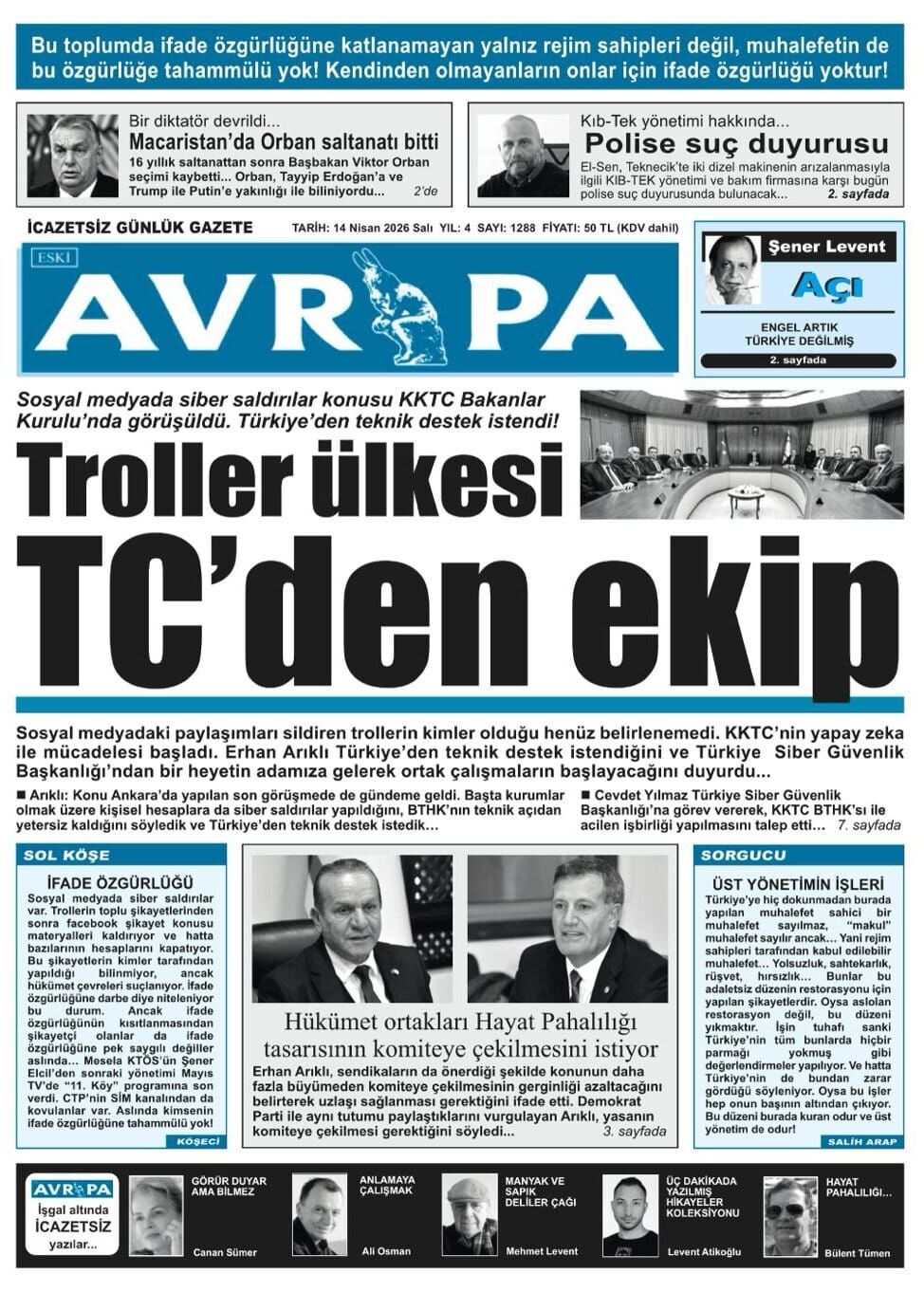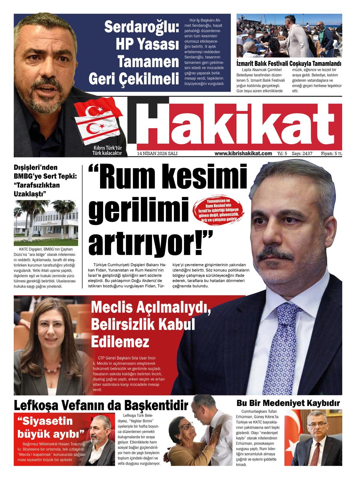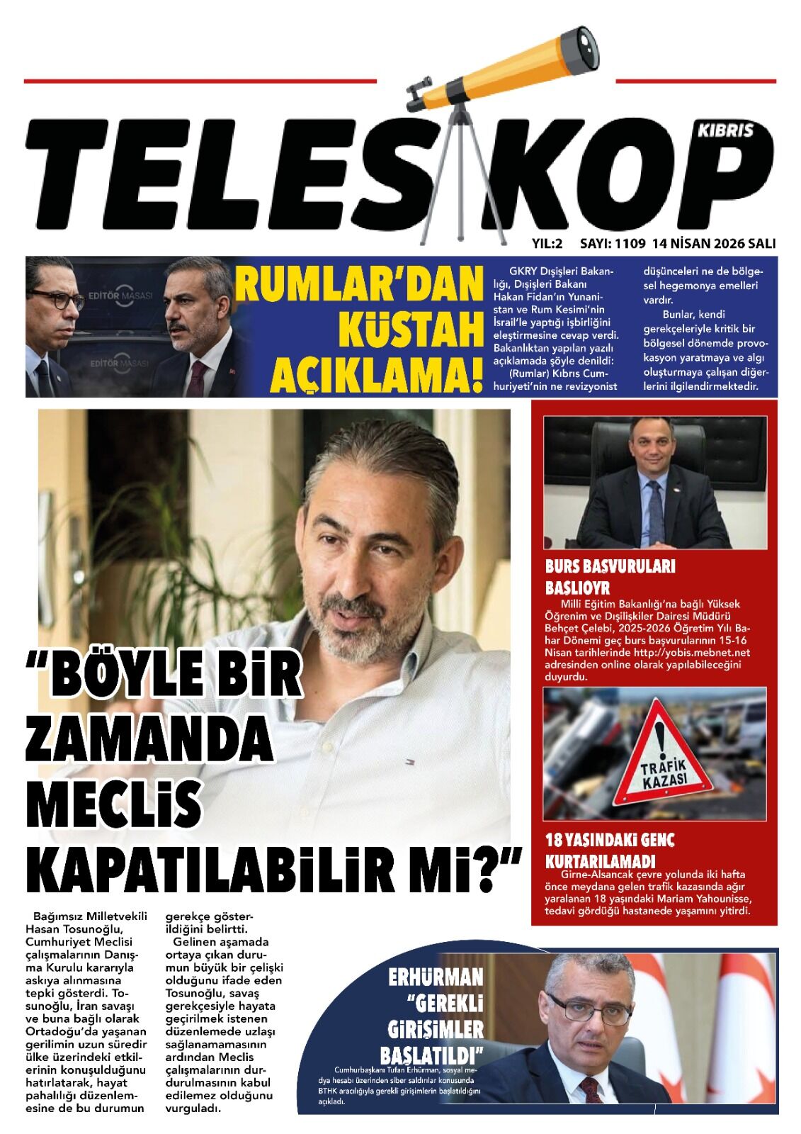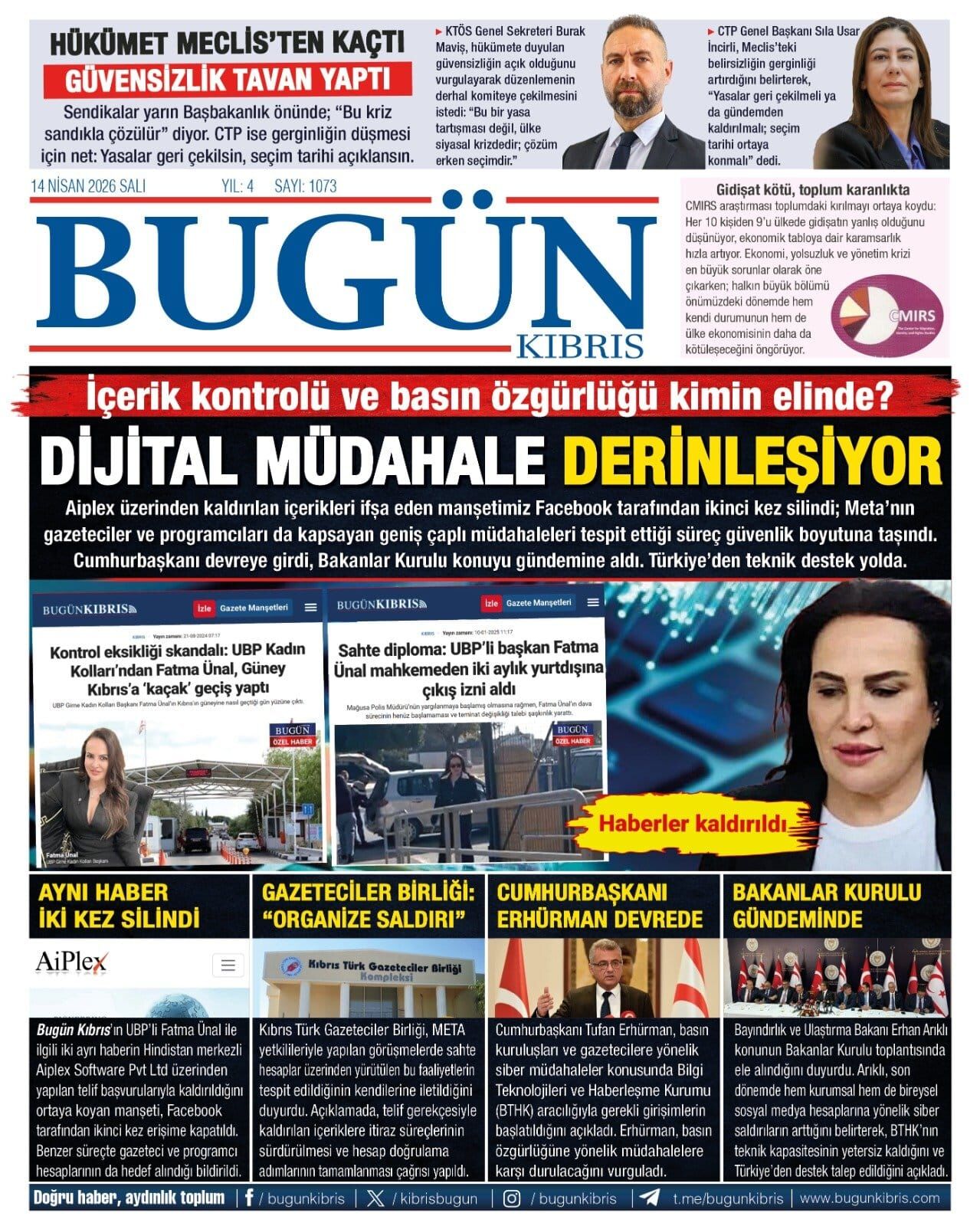 KıbrısGAZETE MANŞETLERİ (14 NİSAN 2026)Nisan 14, 2026 8:10 am PaylaşEtiketlendi:Kibris dakik KKTC gazeteleri manşetleri İlgili haberler GÜLBAHAR: ERHÜRMAN NET TAVIR KOYMALI Nisan 14, 2026 DÖVİZ KURLARI (14 NİSAN 2026) Nisan 14, 2026 HULUSİ AKAR'DAN SERT TEPKİ Nisan 14, 2026 Cevap bırakın Yanıtı iptal etE-posta adresiniz yayınlanmayacak. Gerekli alanlar * ile işaretlenmişlerdirYorumAd * E-posta * İnternet sitesi Daha sonraki yorumlarımda kullanılması için adım, e-posta adresim ve site adresim bu tarayıcıya kaydedilsin.