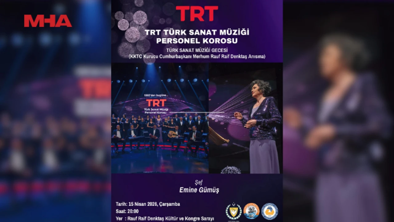 TRT Türk Sanat Müziği Personel Korosu, KKTC Kurucu Cumhurbaşkanı merhum Rauf Raif Denktaş anısına “Türk Sanat Müziği Gecesi” düzenliyor.