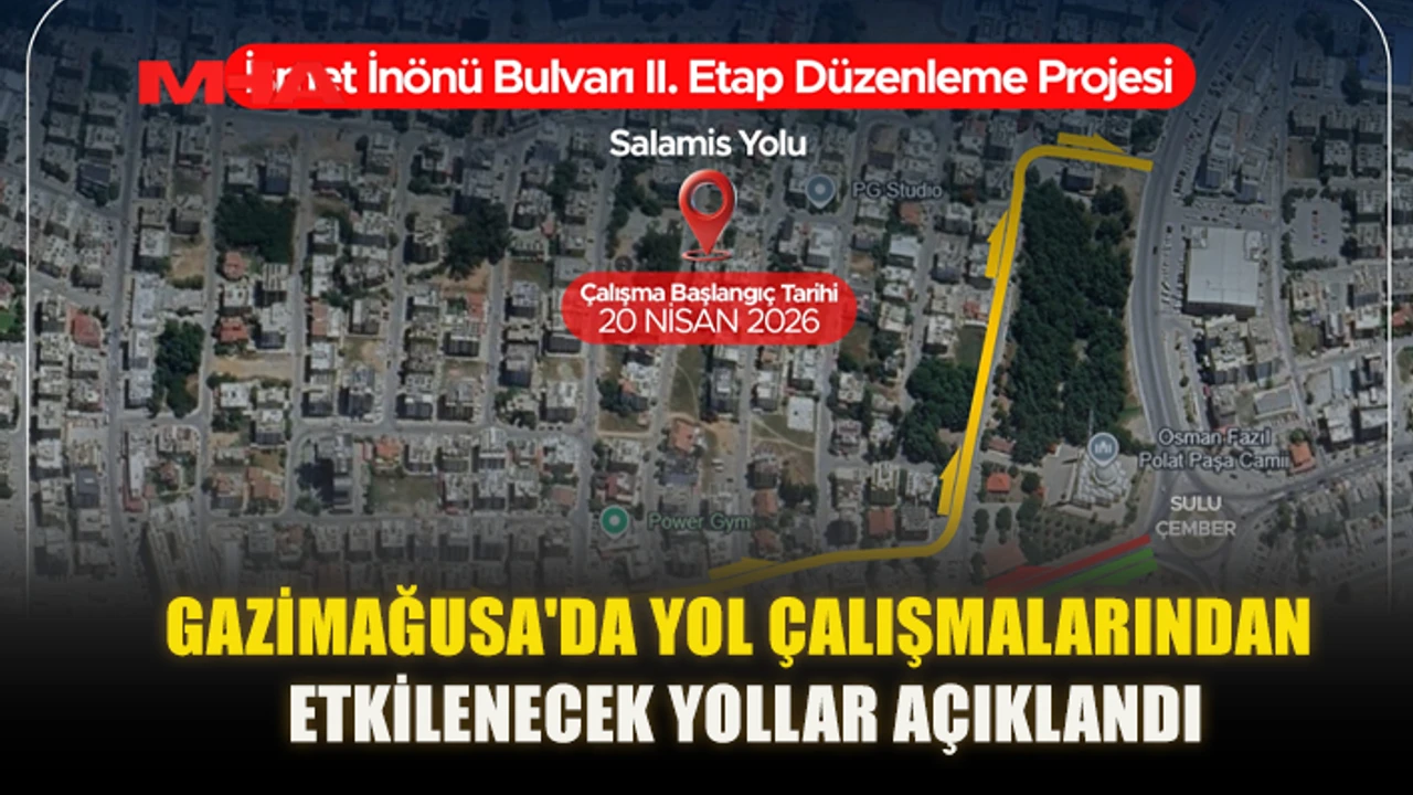 Gazimağusa Belediyesi tarafından yürütülen İsmet İnönü Bulvarı (Salamis Yolu) 2. Etap Düzenleme Projesi kapsamında, yarın başlayacak yol çalışmalarından etkilenecek yollar ve düzenlemeleri açıkladı.