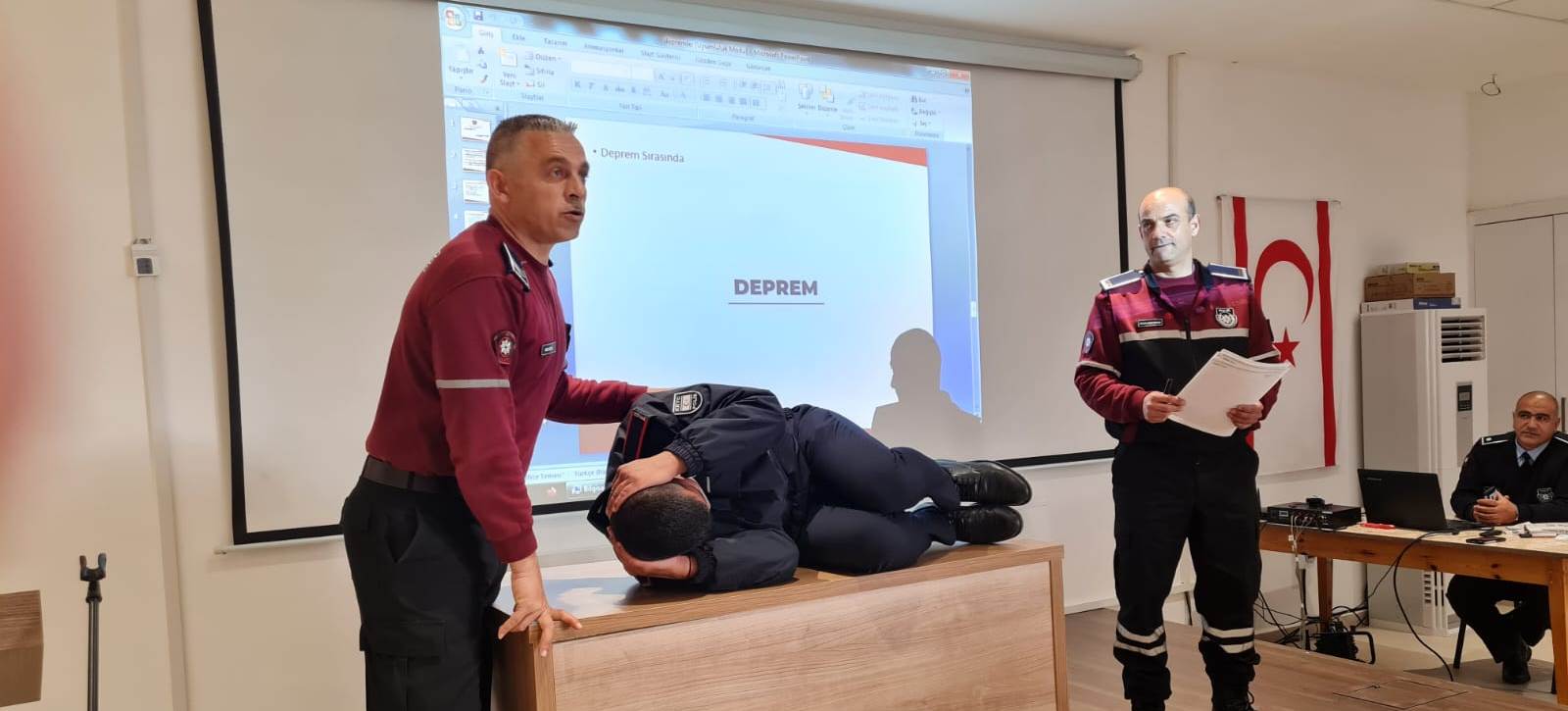Polis Genel Müdürlüğüne bağlı İtfaiye Müdürlüğü eğitmenleri tarafından Polis Okulu Müdürlüğü’nde temel eğitimlerini görmekte olan polis ve itfaiye aday adaylarına yönelik deprem eğitimi verildi.