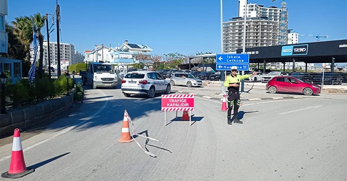 İskele’de, Granel Çemberi ile Unimar Çemberi arasında kalan yolda, yüksek gerilim hatlarında yapılan çalışma nedeniyle çalışmalar süresince yol trafik akışına kapatılmıştır. Ulaşım, İskele Karpaz – Anayolu üzerinden sağlanmaktadır. Bu güzergâhı kullanacak sürücülerin yavaş ve dikkatli seyretmeleri, trafik işaret ve işaretçilerine uymaları önemle rica olunur.