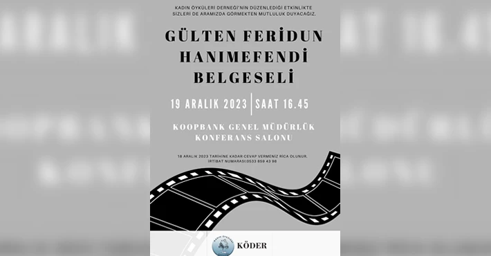 Dernekten verilen bilgiye göre, hayata değer katan kadınlarla ilgili hazırlanan yapım serisinin 21. belgeseli olan ve başta Kıbrıs Türk Kadınlar Birliği olmak üzere ülkenin sivil toplum örgütlerinde uzun yıllar önemli çalışmalar yapmış, yardımseverliğiyle topluma örnek olan sivil toplum çalışmalarının faal kişisi Gülten Feridun’un belgeselinin gösterimi, saat 16.45’te Koopbank Genel Müdürlük Konferans Salonu’nda yer alacak.