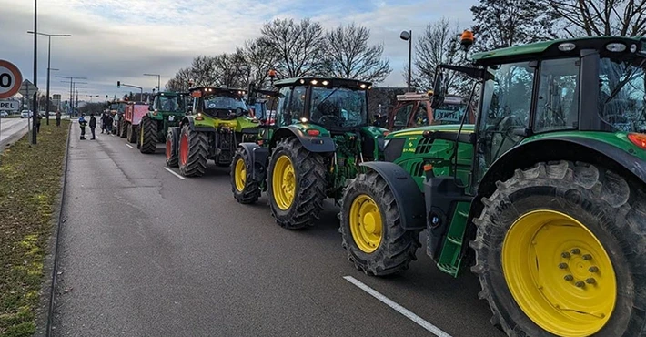 Bourgogne-Franche-Comte bölgesindeki Dijon’da çiftçiler, 80’den fazla traktörle dün kentte korna çalarak konvoy oluşturdu. Bazı çiftçiler, traktörlerini kentin tramvay rayları üzerinde sürdü.