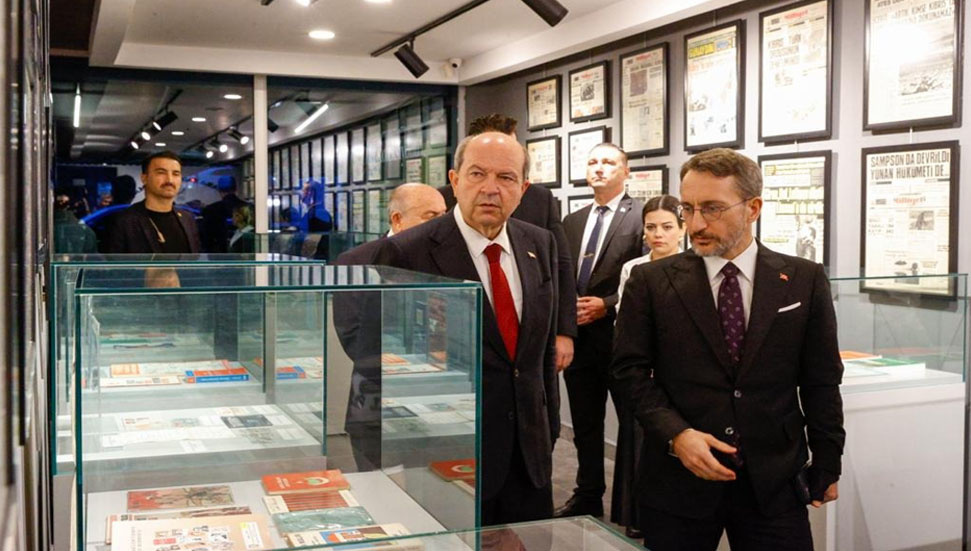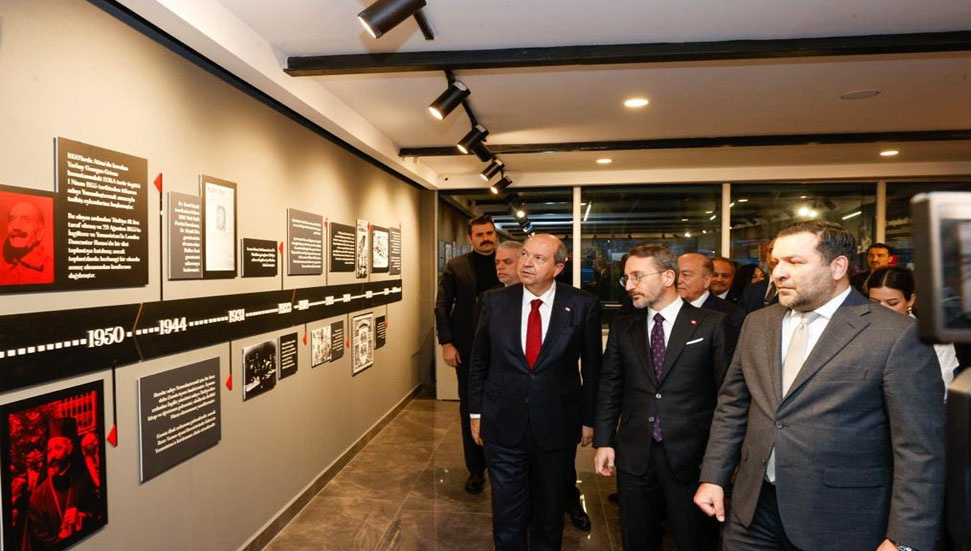 Cumhurbaşkanı Ersin Tatar ve Türkiye Cumhuriyeti Cumhurbaşkanlığı İletişim Başkanı Fahrettin Altun ‘Kıbrıs Gerçekleri Sergisi’ni ziyaret etti.