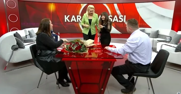 Star TV ekranlarında yayınlanan Zahide Yetiş ile Yeniden programında eşini asistanı ile aldatan Sihirbaz Özgür’ü anlattıkları damga vurdu. Özgür’ün eşi ve yasak aşk yaşadığı asistanına aynı yüzük ve çiçeği aldığı ortaya çıktı. Kendisini pişkin şekilde savunan adam “1 alana 1 bedava” vardı dedi.ZAHİDE YETİŞ TEPKİ GÖSTERDİEşiyle barışmak için programa çıkan Özgür Bey’in asistanı başta olmak üzere birçok kadınla görüştüğü ortaya çıktı. Günlerdir yayında kadınlara gönderdiği ‘Jonglör Alev’ mesajları ifşa olan Sihirbaz Özgür’ün bu sefer de karısı ve yasak aşkına aynı yüzük ve çiçeği aldığı ortaya çıktı. Asistan Candan Hanım’ın yüzüğü fark etmesiyle ortaya çıkan yüzük detayıyla ağzı açık kalan Zahide Yetiş “Allah seni kahretmesin Özgür ya. Aynı yüzük mü bu” diyerek tepki gösterdi.