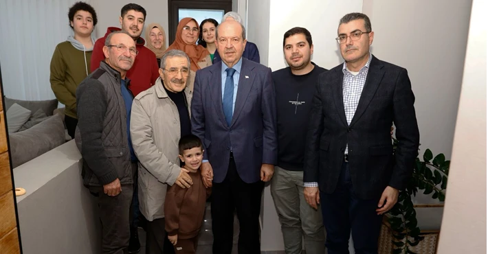 Cumhurbaşkanlığından yapılan yazılı açıklamaya göre, Cumhurbaşkanı Ersin Tatar, Türkiye’de geçen yıl 6 Şubat’ta meydana gelen depremde Hatay’da hayatını kaybeden Sivil Savunma Teşkilatı Başkanlığı personeli Amaç Arnavutoğlu ve Sedat Simavi Endüstri Meslek Lisesi emekli öğretmenlerinden Atay Arkan ile eşi Fatma Arkan’ın ailelerini ziyaret etti.