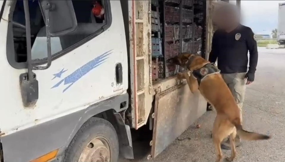 Kamyonette hassas burunlu narkotik köpeği ile arama yapıldı.