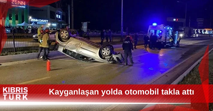 İnegöl’den Eskişehir istikametine seyir halinde olan Eşref A. (22) yönetimindeki otomobil, yağış nedeniyle kayganlaşan yolda direksiyon hakimiyetinin kaybolması sonucu kaldırıma çarparak takla attı.