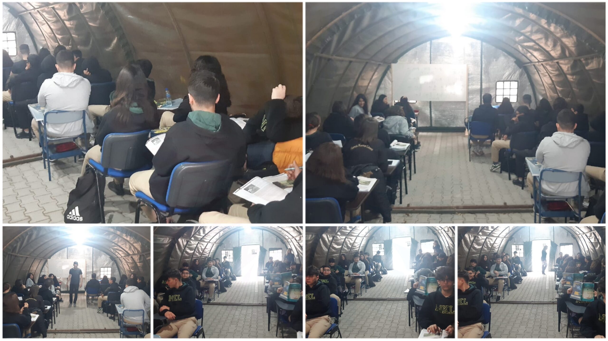 Namık Kemal Lisesi (NKL) öğrencileri de bu sabahtan itibaren okul bahçesinde kurulan çadırlarda eğitimlerine devam ediyor.
