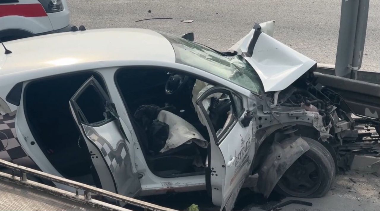 Direksiyon hakimiyetinin kaybedilmesiyle kontrolden çıkıp yolun kenarındaki bariyerlere çarparak duran araçta sürücü Çetin Y. ve 2 kişi sıkıştı.