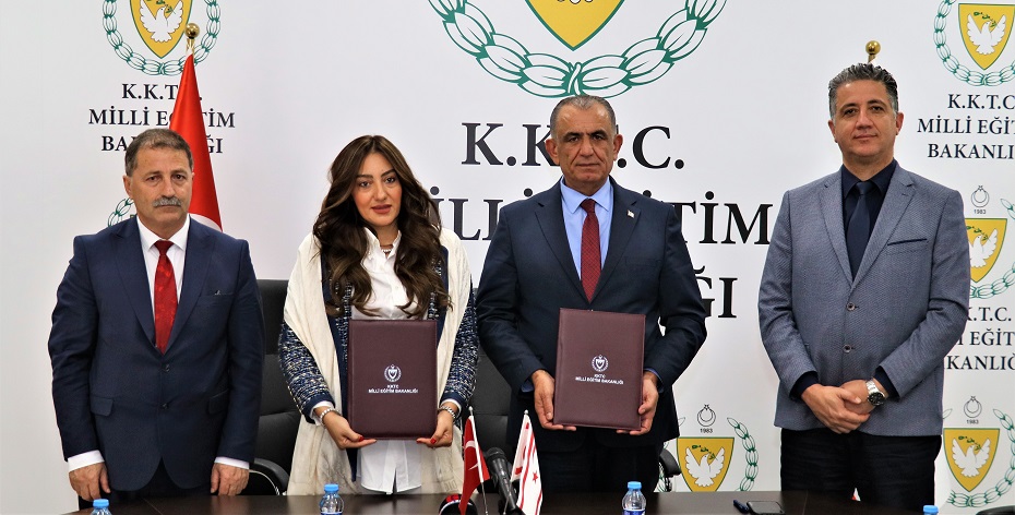 Protokole, Milli Eğitim Bakanı Nazım Çavuşoğlu ile Halil Falyalı Yardım Vakfı Başkanı Özge Taşker Falyalı imza koydu.
