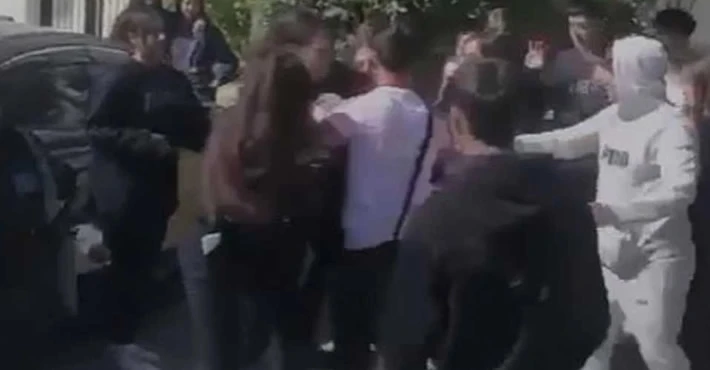 Gerginliğin artmasıyla öğrenciler saç saça baş başa birbirine girdi. Kavga anları başka bir öğrenci tarafından kayda alınırken, görüntüler tepkileri de beraberinde getirdi.