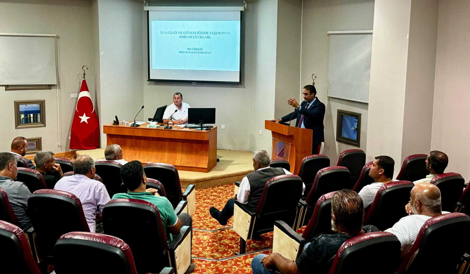 Kıbrıs Türk İnşaat Müteahhitleri Birliği Toplantı Salonu’nda yer alan etkinlikte, İş Sağlığı ve Güvenliği Uzmanı Mimar Hasan Kolozali tarafından birlik üyelerine sunum yapıldı.