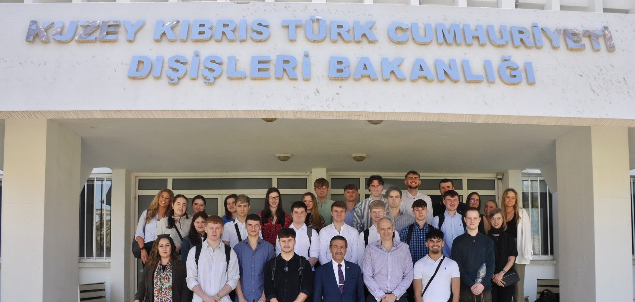 Dışişleri Bakanı Tahsin Ertuğruloğlu, İngiltere’deki Newcastle Üniversitesi, “Siyasal Coğrafya Bölümü”nden bir grup öğrenciyle bir araya geldi, Kıbrıs davasını anlattı.