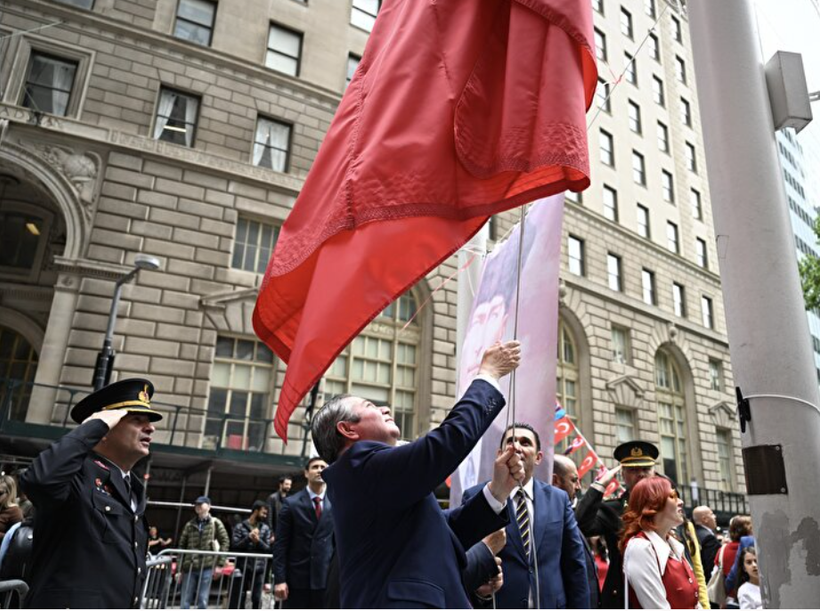 Türk Amerikan Dernekleri Federasyonu, Wall Street bölgesindeki meşhur boğa heykelinin de bulunduğu Bowling Green Park’ta (TADF) “41. Geleneksel New York Türk Yürüyüşü ve Festivali Bayrak Çekme” töreni düzenledi. Törene, Türkiye’nin Washington Büyükelçisi Sedat Önal, Türkiye’nin Birleşmiş Milletler (BM) Daimi Temsilcisi Büyükelçi Ahmet Yıldız, Türkiye’nin New York Başkonsolosu Reyhan Özgür, TADF Başkanı Gülay Aydemir, BM Daimi Temsilciliği İletişim Müşaviri Gül Kıratlı, diplomatik misyonlardan temsilciler, Türk okullarının, dernek ve sivil toplum kuruluşlarının temsilcileri ile çok sayıda Türk vatandaşı katıldı. Ünlü finans merkezinde Türk bayrağı büyük coşkuyla bu sene 24. kez göndere çekildi.
