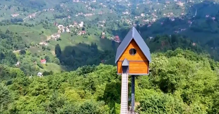 Kaporta ustası Çelik, merkeze bağlı Derebaşı köyündeki arazisinde ailesi için yabani hayvanların giremeyeceği ahşap ev yapmaya karar verdiğini söyledi. Böyle bir evin çocukluk hayali olduğunu anlatan 38 yaşındaki Çelik, arkadaşının tavsiyesi ile 12 metrelik 30 ton yük taşıma kapasitesine sahip demir direk satın aldığını belirtti.