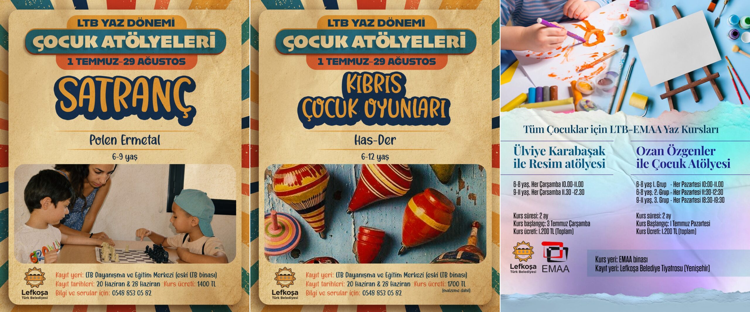 LTB’nin Akdeniz Avrupa Sanat Derneği (EMAA) ile iş birliği içerisinde düzenlediği yaz kurslarında çocuk resim atölyeleri yer alırken, çeşitli sanatçı, eğitimci ve uzmanlar tarafından uygulanacak Yaz dönemi çocuk atölyelerinde ise satrançtan hip-hop ve modern dansa, yogadan sosyal beceri iletişim atölyesine, yaratıcı ahşap atölyesinden Kıbrıs çocuk oyunlarına, oyun evi atölyesinden dikkat atölyesine ve sanata ilk adım atölyesine kadar çocukların gelişimine katkı yapacak birçok farklı etkinlik yer alacak.