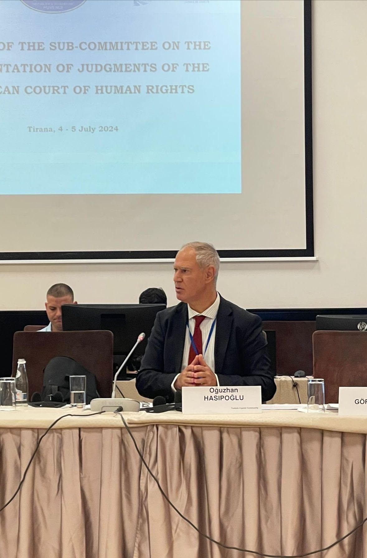 Cumhuriyet Meclisi’nden yapılan açıklamaya göre, Avrupa Konseyi Hukuk ve İnsan Hakları Komitesi toplantısında Hasipoğlu, Avrupa İnsan Hakları Mahkemesi (AİHM) kararlarının uygulanmasıyla ilgili olarak Güney Kıbrıs Rum yönetiminin haksız tutuklama girişimlerine işaret ederek TMK etkin bir iç hukuk olduğunu ifade etti.