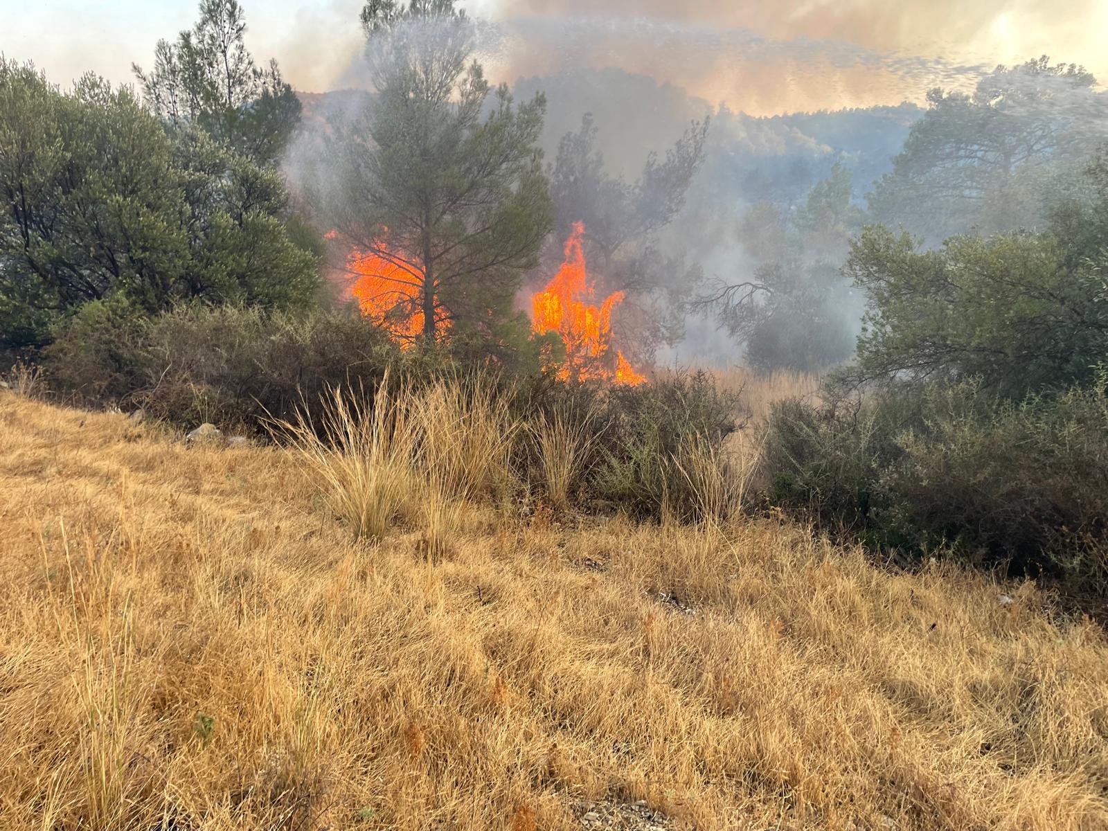 İskele bölgesinde Altınova ile Ağıllar köyü arasındaki tepelik arazide çıkan yangın, kontrol altına alındı.