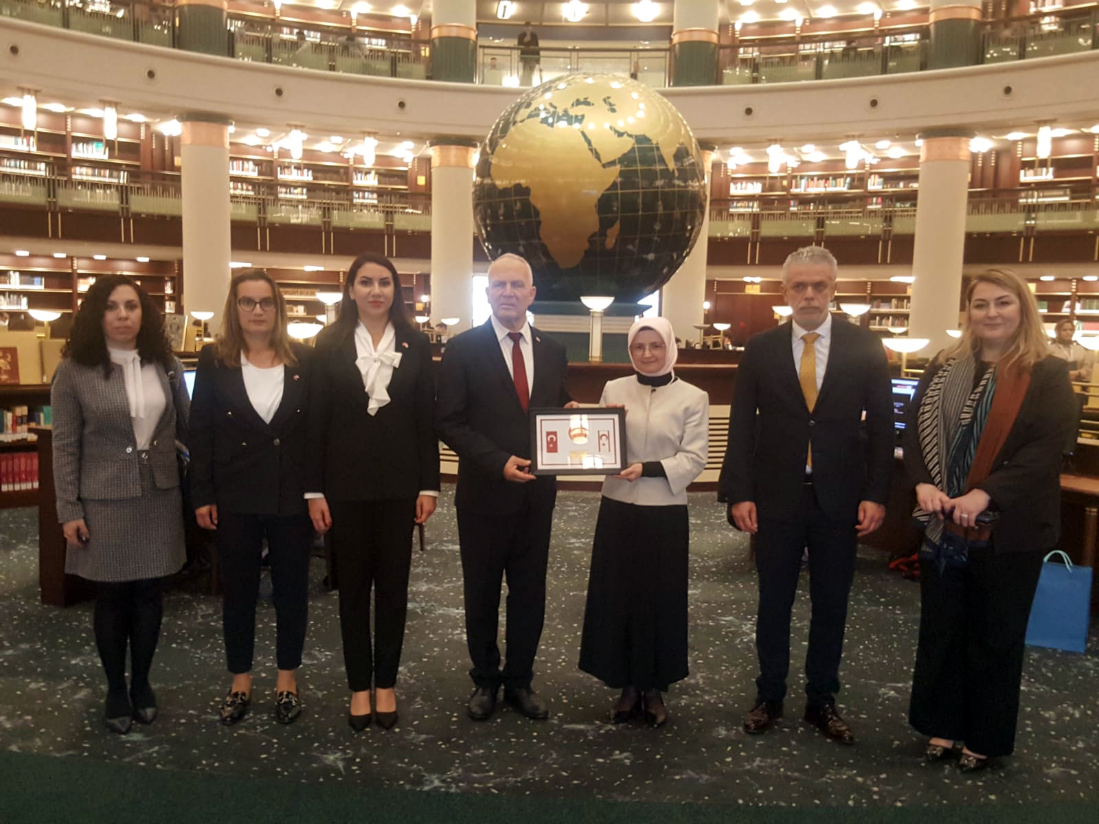 Ziyarette özellikle Kıbrıs Türk halkının mücadelesini anlatan Kıbrıslı Türk yazarların yazmış olduğu eserlerden oluşan kitapları Millet Kütüphanesine teslim etti.