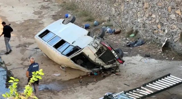 Bursa’nın Kestel ilçesinde kontrolden çıkan servis minibüsünün dereye uçtuğu anlar kameralara anbean yansıdı.