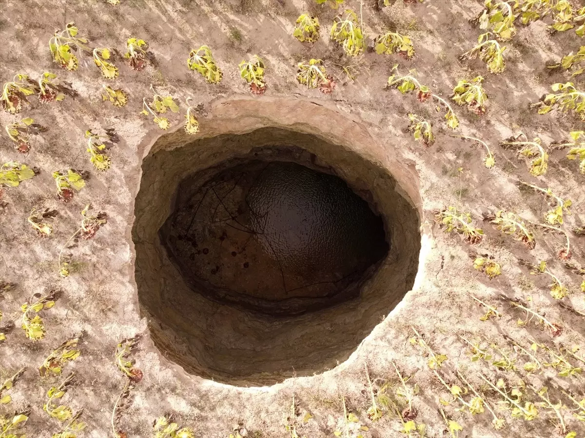 İlçeye bağlı kırsal Sadıroğlu Mahallesi’nde yaşayan Erkan Ceylan, kendisine ait ayçiçeği tarlasında obruk oluştuğunu fark etti.