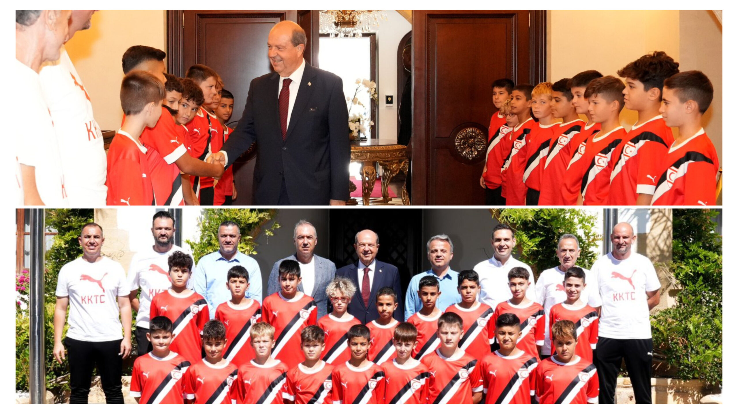 Cumhurbaşkanı Ersin Tatar, KTFF Başkanı Hasan Sertoğlu, KTFF yönetimi ve beraberindeki U-12 futbol erkek milli takım sporcuları ve antrenörlerini kabul etti.