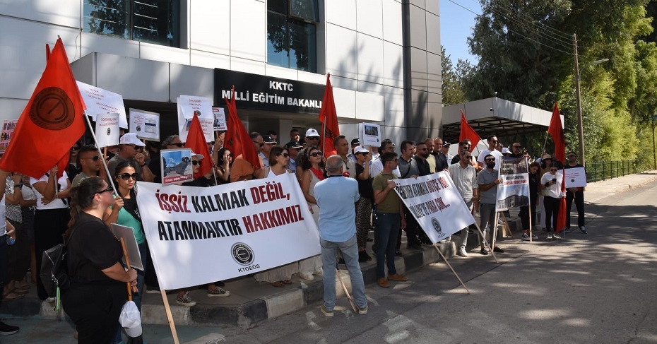 Kıbrıs Türk Orta Eğitim Öğretmenler Sendikası (KTOEÖS), okulların açılışının bir hafta ertelenmesi kararını protesto etmek amacıyla Cumhurbaşkanlığı Yerleşkesi ve Milli Eğitim Bakanlığı önünde eylem yaptı.