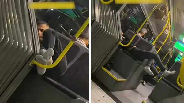 İstanbul‘da metrobüste çekilen ve sosyal medyada hızla yayılan görüntüler, izleyenleri şaşkına çevirdi. Bir yolcu, ayakkabılarını çıkarıp ayaklarını metrobüsün direğine uzattı, ardından da iki kişilik oturacak alana yatarak yolculuk yaptı. Çevredeki yolcular durum karşısında şaşkınlık içinde kaldı. Şahıs, diğer yolcuların şaşkın bakışlarına aldırmadan yolcuğa devam etti.