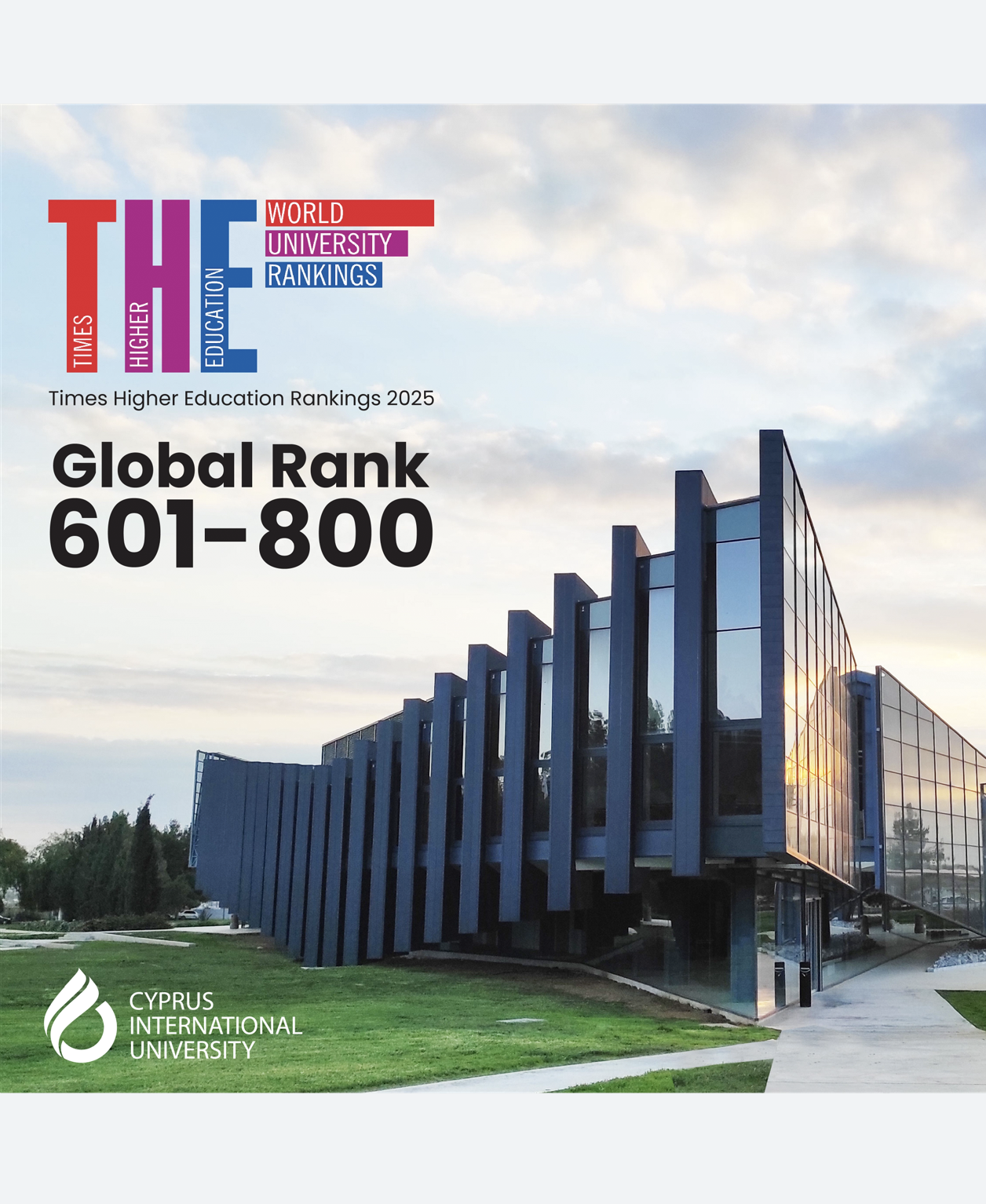 Her yıl dünyanın en iyi üniversitelerinin listesini yayınlayan İngiltere merkezli Times Higher Education (THE) 2025 yılı üniversite sıralamalarını açıkladı. THE’nin 2025 yılı sıralamalarına göre Uluslararası Kıbrıs Üniversitesi (UKÜ) 601-800 bandında yer aldı.