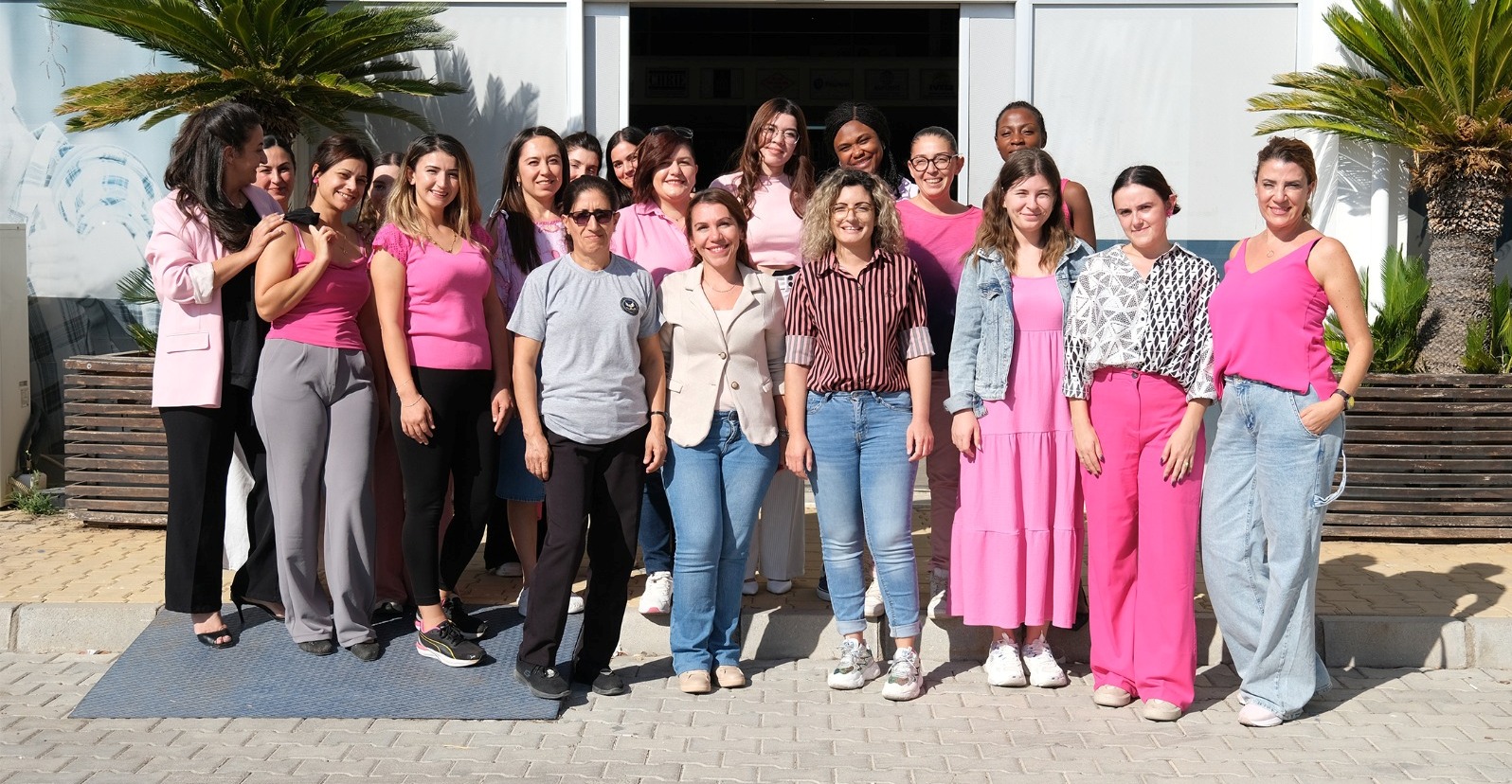Etkinlikte katılımcılar, pembe renkler giyinerek farkındalık mesajı verdi.