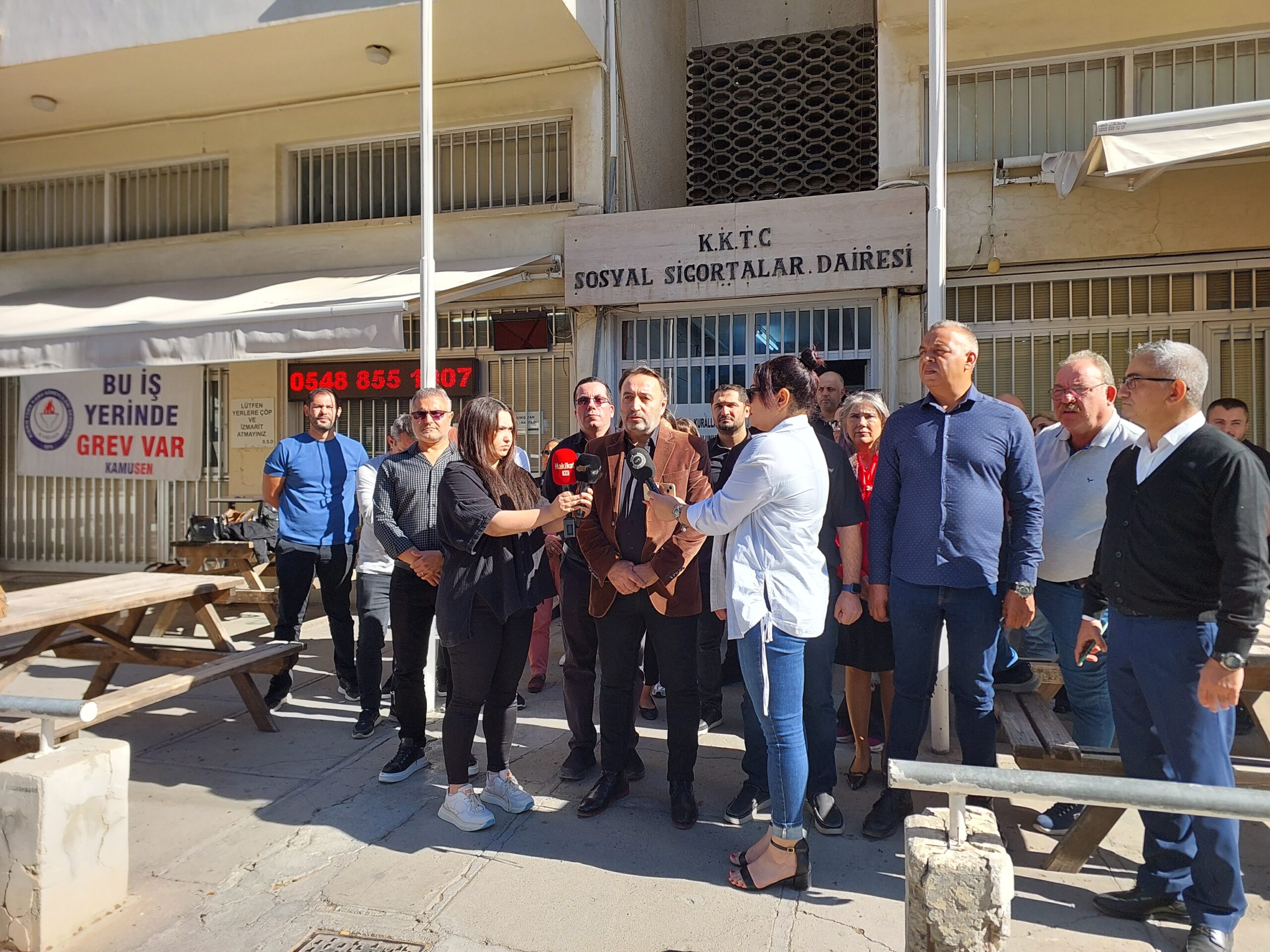 Sendika, Lefkoşa Sosyal Sigortalar Dairesi önünde basın açıklaması yaptı.