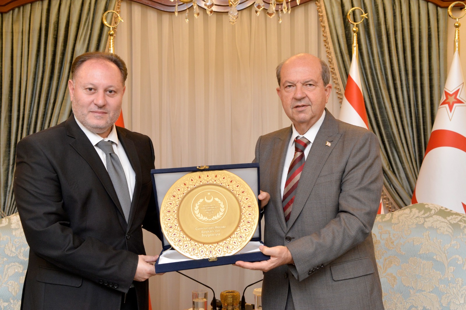 Çalışmaları kararlılıkla sürdüreceklerini ifade eden Öztürkler, Cumhurbaşkanı Tatar’a iki devletli siyaset konusunda da tam destek verdiklerini vurguladı.
