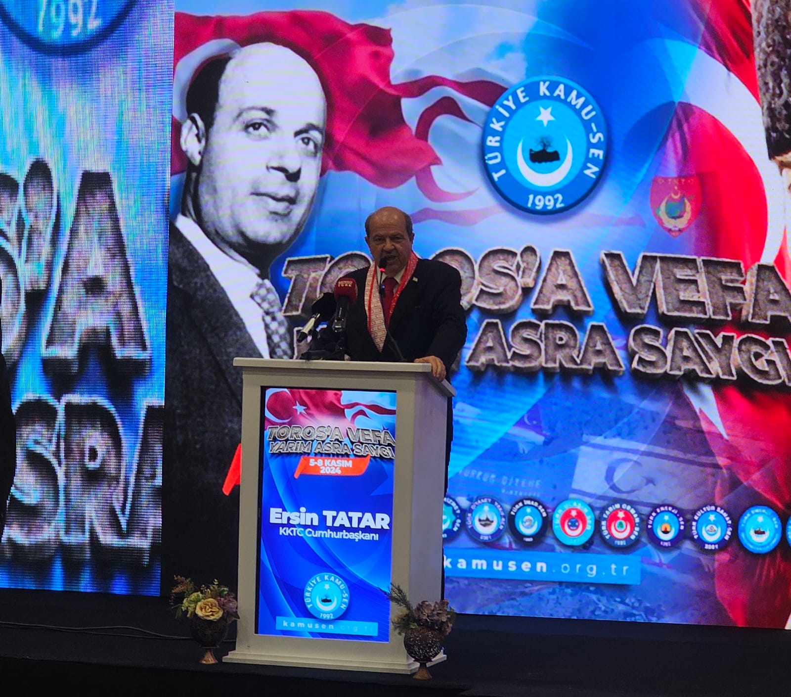 Sendikal hayatta çalışanların beklentilerini yerine getirebilmek için Kuzey Kıbrıs Türk Cumhuriyeti’ne sahip çıkılması gerektiğini vurgulayan Cumhurbaşkanı Tatar, alt ve üst yapının geliştirilmesi için Türkiye Cumhuriyeti ile yürütülen çalışmalara sahip çıkılması gerektiğini ifade etti.