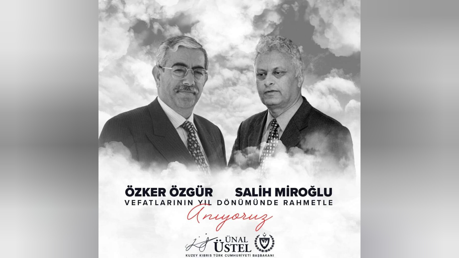 Başbakan Ünal Üstel, Ulusal Birlik Partisi’nin (UBP) eski Genel Sekreteri ve eski bakanlardan Salih Miroğlu ile Cumhuriyetçi Türk Partisi (CTP) Genel Başkanlığı, Bakanlık ve Başbakan Yardımcılığı görevlerinde bulunan, Birleşik Kıbrıs Partisi (BKP) kurucularından Özker Özgür’ün 19. ölüm yıl dönümleri nedeniyle mesajı yayımladı.