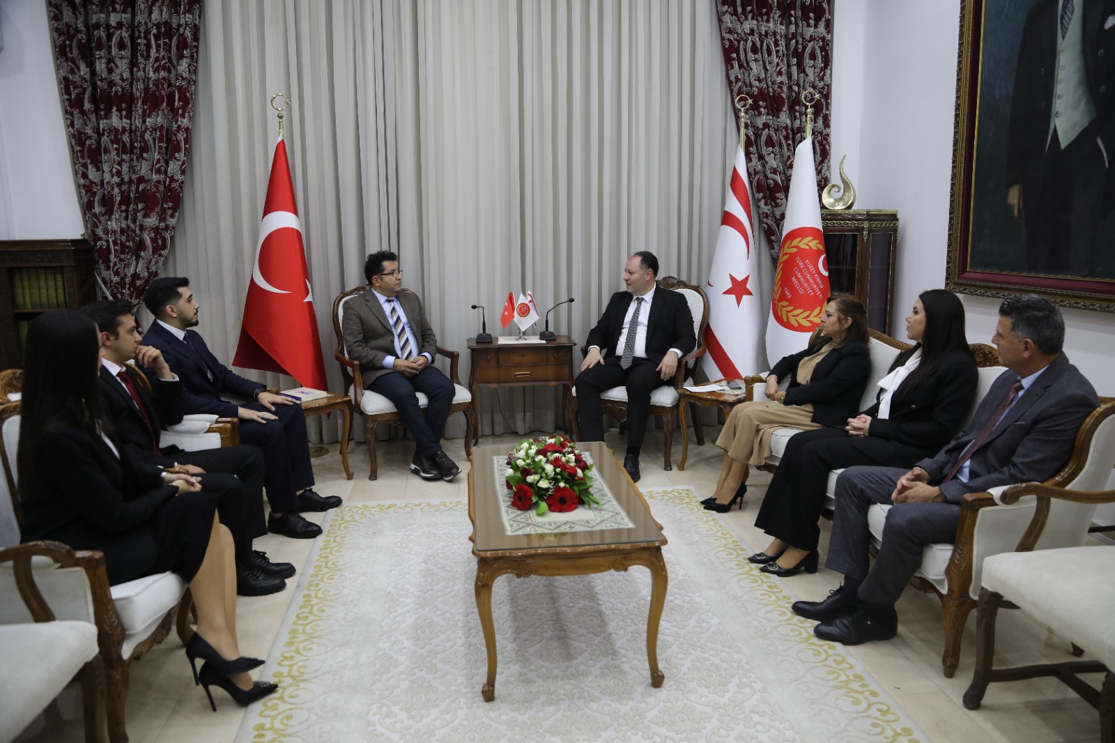 Cumhuriyet Meclisi Başkanı Ziya Öztürkler, Lobi Türk Genel Yayın Danışmanı Prof. Dr. Haşim Şahin ve heyetini Meclis Şeref Salonu’nda kabul etti.