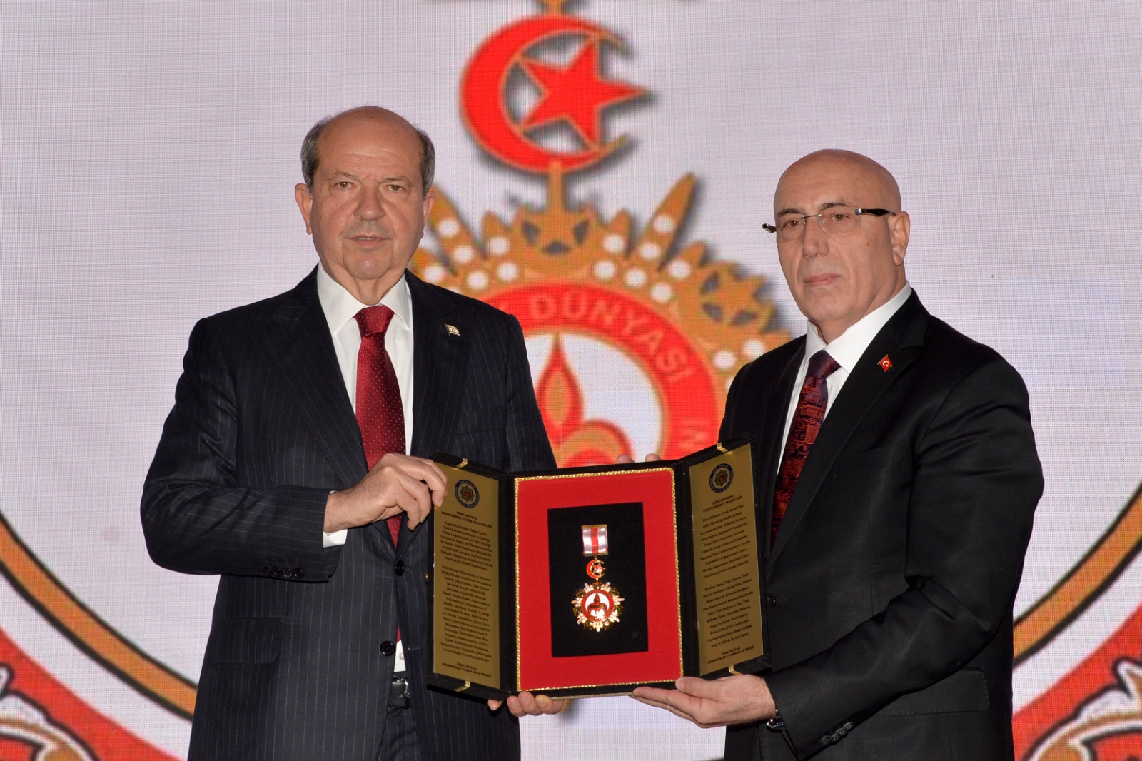 Konferansın ardından düzenlenen törende Cumhurbaşkanı Tatar’a, Türk Dünyası Mühendisler ve Mimarlar Birliği tarafından “Türk Dünyası Üstün Hizmet Madalyası” takdim edildi. Ödül, Cumhurbaşkanı Tatar’ın Türk Dünyası ile Kuzey Kıbrıs Türk Cumhuriyeti arasındaki bağların güçlenmesi konusunda ortaya koyduğu çabalara ve devlet adamlığı örneği sergileyerek birliğin güçlenmesine sunduğu katkılara ithafen verildi.