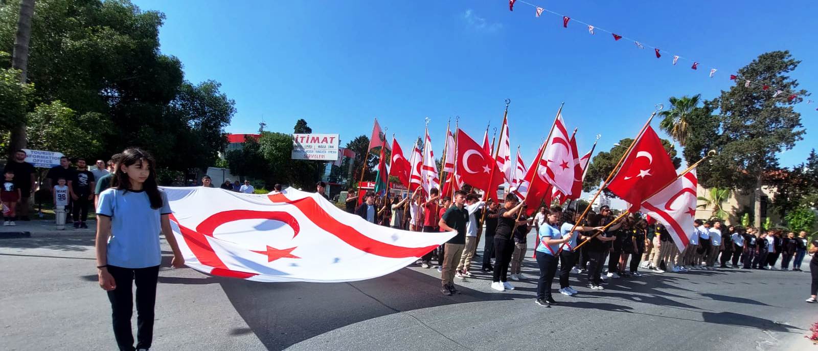 Gazimağusa’daki törenler öğrencilerin Şampiyon Melekler Takımı anısına “Atam Işığınla Geleceğe Yürüyoruz” anısınatören alanına yürüyüş gerçekleştirmesiyle başladı.