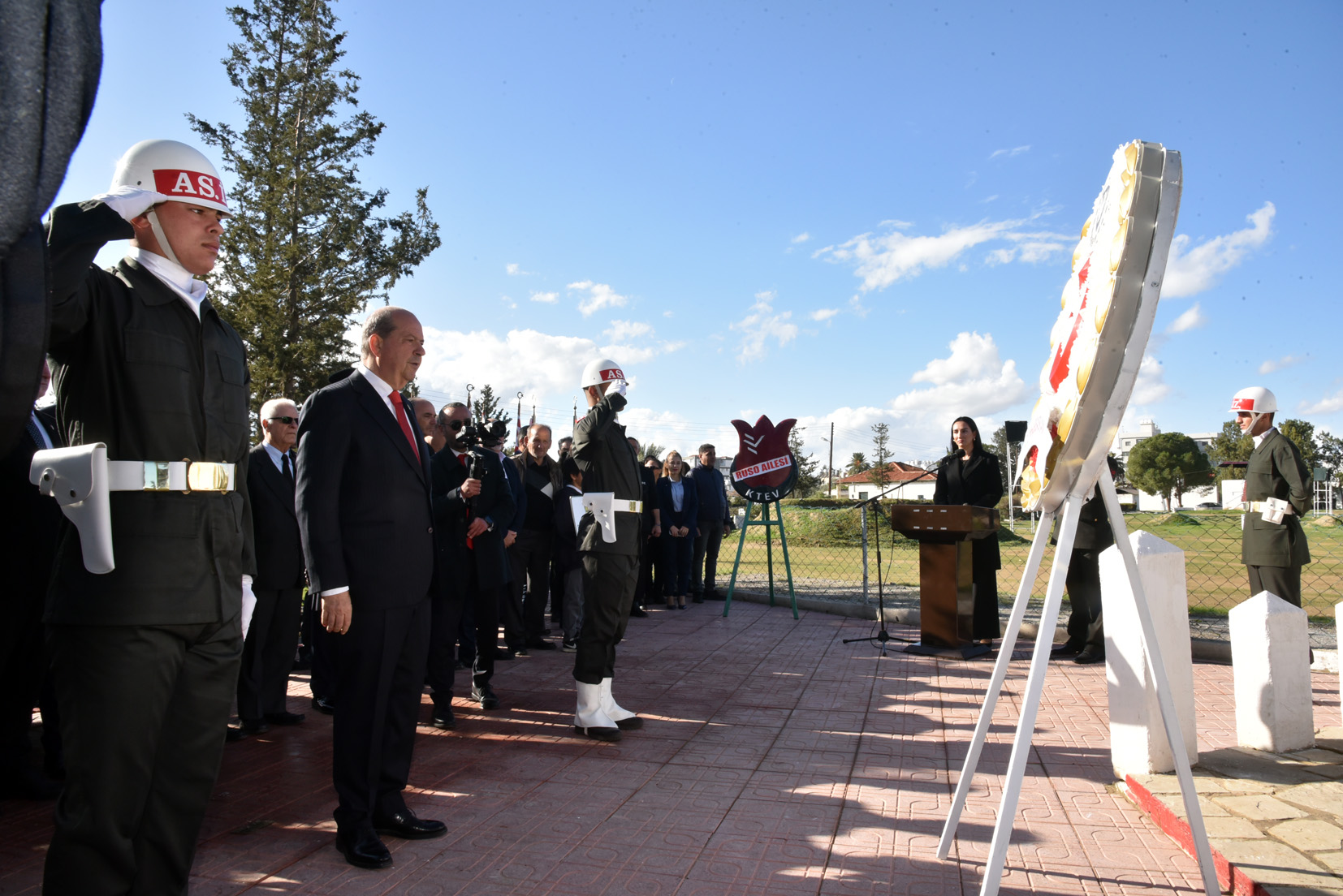 Cumhurbaşkanı Ersin Tatar, Cumhuriyet Meclisi Başkanı Ziya Öztürkler, sivil toplum örgütü kurum, kuruluş temsilcileri, askeri erkan, öğrencilerin katıldığı törende, Cumhurbaşkanı Ersin Tatar ve Ruso ailesi adına Kemal Ruso konuşma yaptı.
