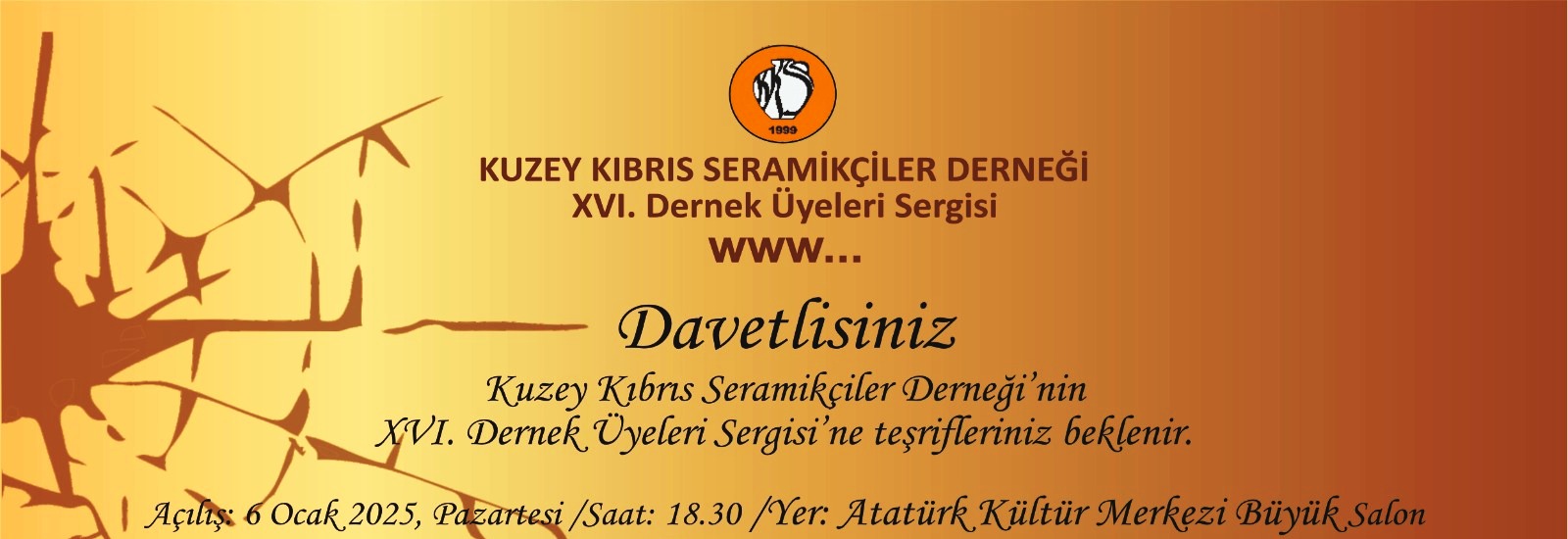 Kuzey Kıbrıs Seramikçiler Derneği’nin 16’ncı Dernek Üyeleri Sergisi, 6 Ocak Pazartesi günü saat 18.30’da Atatürk Kültür Merkezi (AKM) Büyük Salon’da açılacak.