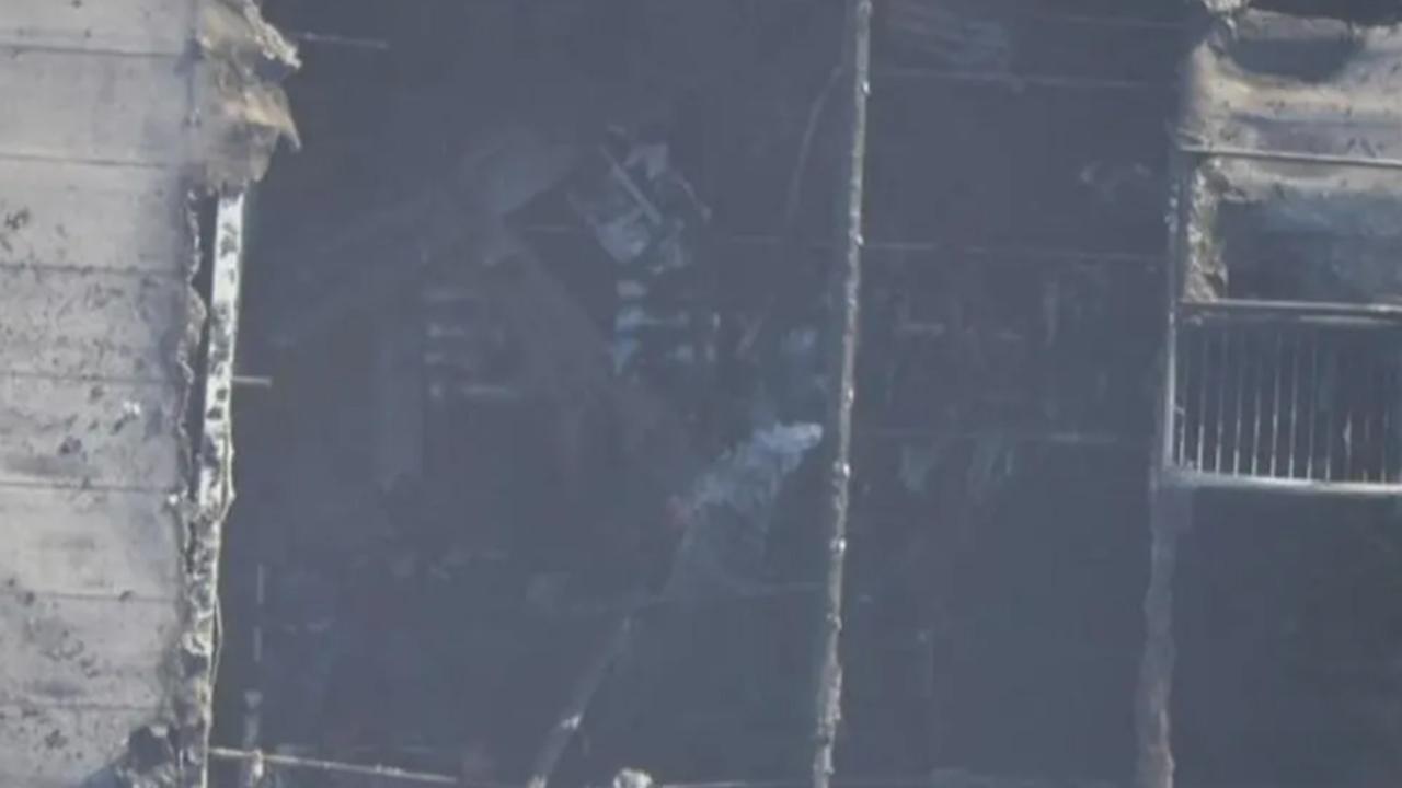 Havadan çekilen görüntüler, uçağın parçalarının binanın içinde bulunduğunu gösteriyor. Kazanın ardından çıkan yangının itfaiye ekiplerince söndürüldüğü bildirildi.