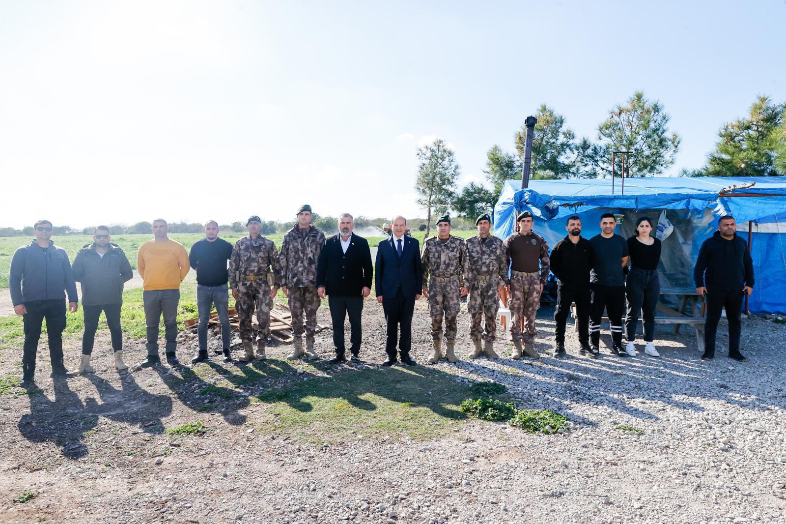 Dışişleri Bakanı Tahsin Ertuğruloğlu ve Beyarmudu Belediye Başkanı Bülent Bebek’in eşlik ettiği Cumhurbaşbaşkanı Tatar, Kıbrıs Türk Barış Kuvvetleri Komutanı ve Güvenlik Kuvvetleri Komutanı’nın da hazır bulunduğu Bayraktepe’de kendisine verilen brifingin ardından basına açıklama yaptı.