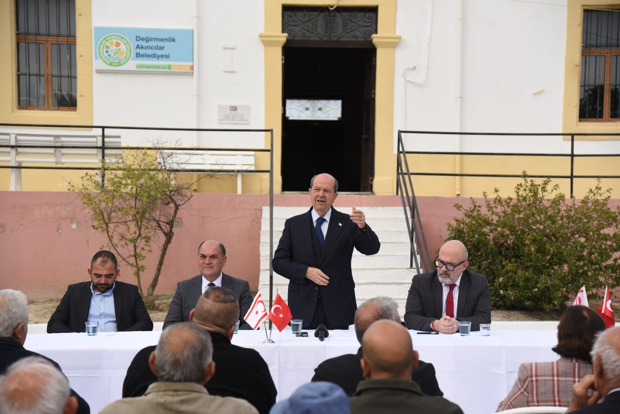 Cumhurbaşkanı Ersin Tatar, Akıncılar köyünü ziyaret ederek açılmasını önerdiği Akıncılar-Limya Kapısı’na ilişkin bölge muhtarları ve halkla toplantı yaptı.