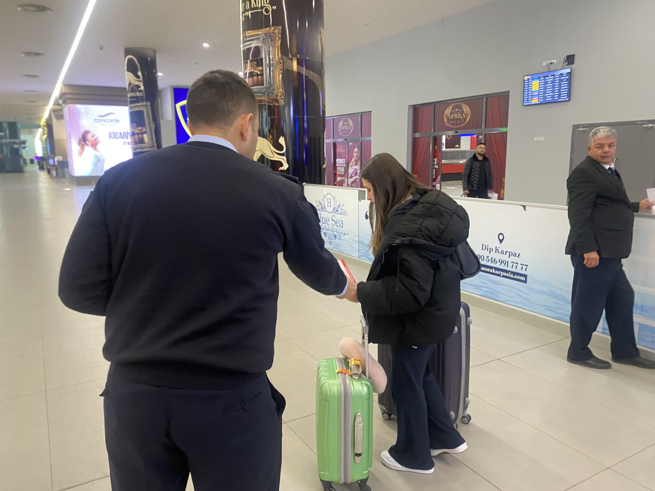 Ercan Havalimanı’nda KKTC’ye gelen yabancılara trafik bilgilendirme broşürü dağıtılıyor