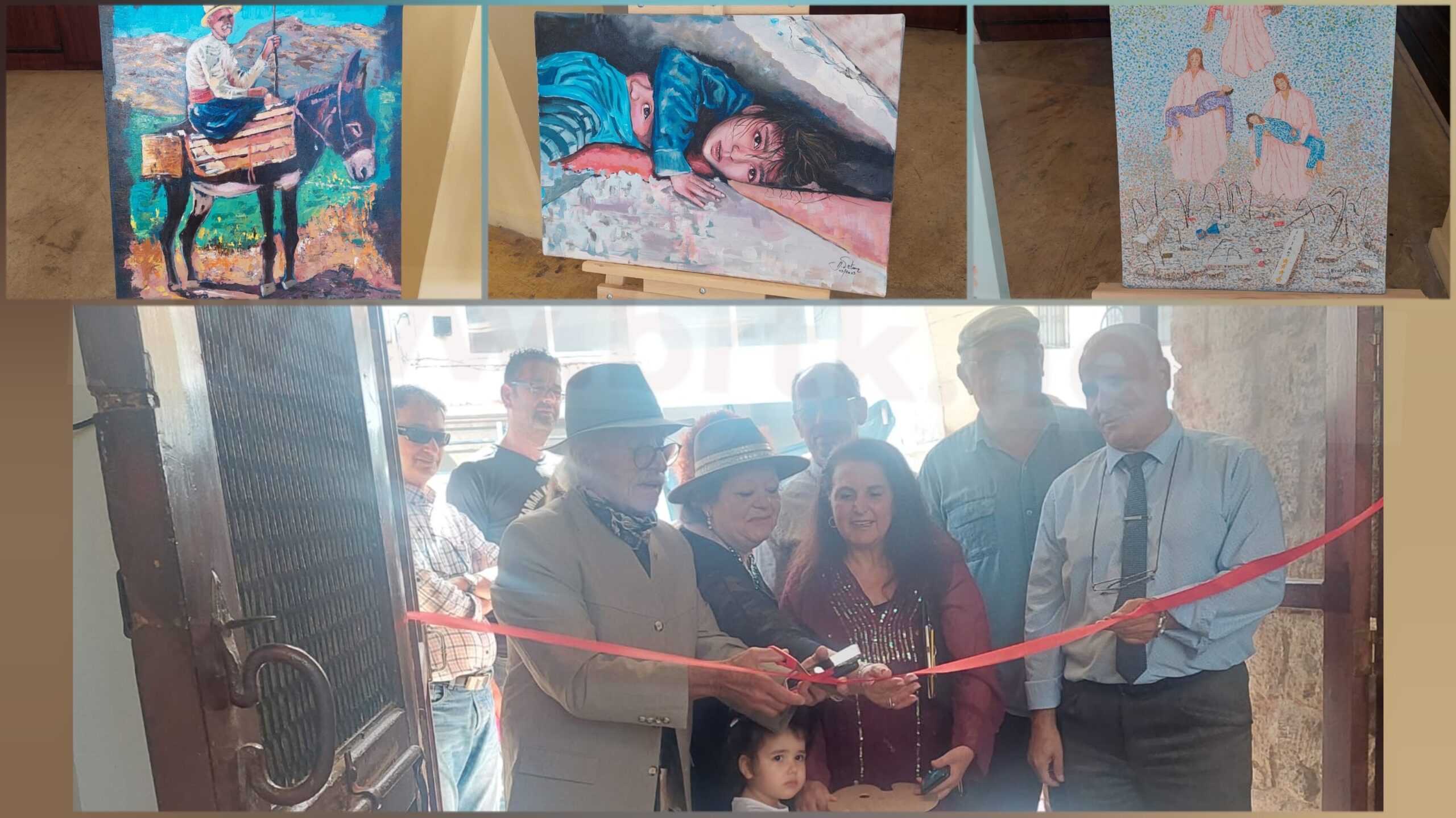 Konuşmaların ardından Şampiyon Melekler Alp Akın ve Doruk Akın’ın babası Osman Akın ve minik kız kardeşleri Ayliz ve sanatçıların katılımıyla kurdele kesilerek serginin açılışı gerçekleştirildi.