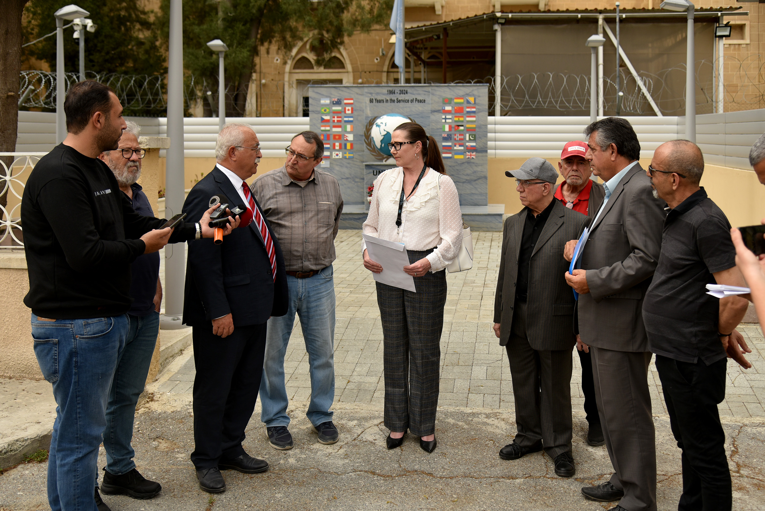 “Kıbrıslı Yurtseverler Hareketi” ara bölgedeki Ledra Palace Hotel önünde Kıbrıs sorununun çözümüne yönelik başlattığı imza kampanyası sonuçlarını içeren mektubu Birleşmiş Milletler Genel Sekreteri Antonio Gutteres’e iletilmek üzere Politik İşler Sorumlusu Sherry Holbrook’a teslim etti.
