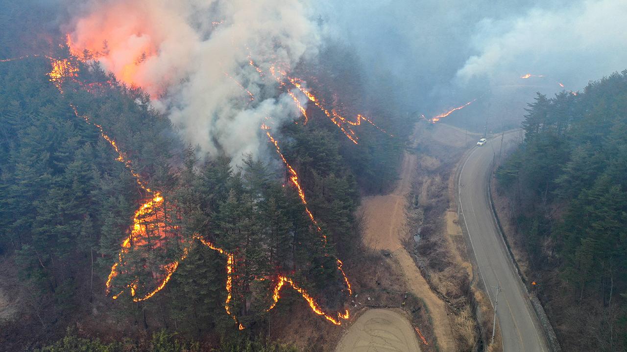Güney Kore hükümeti, Ulsan şehri, Kuzey Gyeongsang ve Güney Gyeongsang eyaletleri dahil olmak üzere güneydoğu bölgelerinde çıkan orman yangınları nedeniyle ulusal afet durumu ilan etmişti.