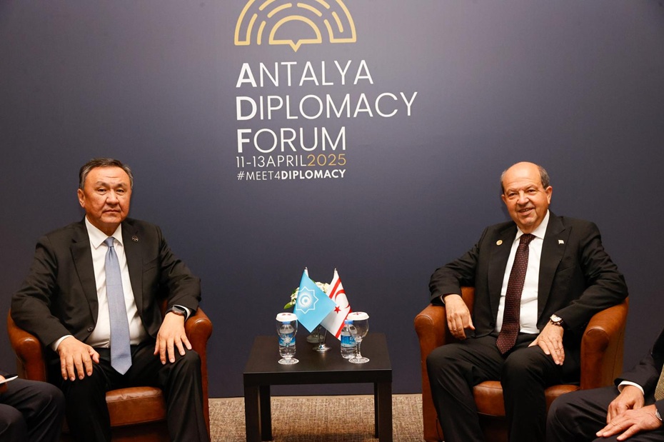 Cumhurbaşkanı Ersin Tatar, 4. Antalya Diplomasi Forumu kapsamında Türk Devletleri Teşkilatı (TDT) Genel Sekreteri Kubanychbek Omuraliev ile görüştü.